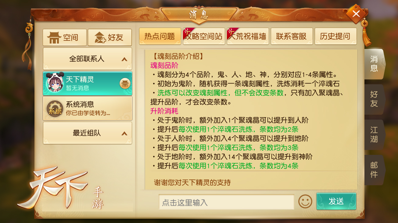 真3D极致画面,无缝大世界,网易顶级品质旗舰《天下》手游开学特别版“奇遇季·纸飞机奇缘”带你邂逅吴磊神秘留言!更畅快的游戏体验,更广阔的结友空间,《天下》手游已合并部分服务器为天下少年献上极致大荒,多种福利活动限时放出,大量合服奖励等你领取!装备魂刻培养系统已开启,鬼、人、地、神四种不同品阶属性,十层等级打造七重境界,助你登上大荒超神之巅! 【锻造超神装备 魂刻系统来袭】 为了给天下少年带来实力更强的超神体验,大荒已开放装备魂刻属性及相关的属性培养系统。凡是配戴90级装备的少侠,都可在装备强化-洗练-魂刻处增加属性,为自己锻造王者装备!拥有84级天域武器的少侠们,角色到达90级后也将开放魂刻系统! (图:庚霆出品) 魂刻分为4个品阶,神、地、人、鬼,分别对应1-4条不同属性。初始品阶为鬼阶,鬼阶提升后将处于人阶,再次提升则处于地阶,最后提升至神阶。魂刻在初始品阶获得的随机属性可以通过洗炼进行改变,加入聚魂晶并提升品阶,可以改变品阶属性的条数。 除不同品阶以外,装备上的魂刻同时具备升级系统,每件90装备或84级天域武器均可将魂刻提升到10级,升级后可获得属性的提升。全身装备的魂刻等级到达一定总数后可激活魂刻套装效果。当全身魂刻等级达到20/35/50/65/80/90/100,即可分别开启魂刻套装的一至七重境界,走上王者超神之路! (图:庚霆出品) 这是一个强者为尊的天下,锻造超神装备、开启魂刻系统,助力天下少年完成超神进阶!精英对决也能傲视群雄,《天下》手游带你一路直上巅峰!这天下,少年都在玩! 了解更多相关信息,请前往http://www.yzz.cn/sy/tx/ |