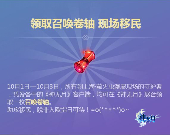再过几天就到举国欢腾的国庆节了,在这个长达八天的假期里,小伙伴们准备好放飞自我了吗?《神无月》已经给出生后的第一个长假制定好计划啦!10月1日—3日《神无月》将现身2017上海萤火虫漫展,并将开启规模盛大的集章游园会活动。现场不仅福利大满足,还有花泽香菜隔空献声哦。想知道游园限定计划会有哪些精彩内容吗?提前剧透,千万别错过。 新角色CV担当?花泽香菜隔空献声 逛漫展,除了和Coser小姐姐合影,扫荡周边之外,相信每一个二次元er都有一个梦想,就是能“遇见”次元界的大咖。《神无月》满足大家的梦想,特别公布声动大使花泽香菜的新角配音计划。在2017萤火虫漫展的现场,香菜不仅将通过视频问候现场观众,她还将带来一个特别的消息。除了人气牧师妮娜之外,香菜还将为一位神秘的新角色进行配音。想知道这位新角色的详细情报吗?香菜会在现场给大家解读她对于新角色的理解哦。 策划“社长“带你飞 直播送福利 一直在幕后为我们筹备着新版本的CH哥哥这次也要来到大家的面前了。这场久违的“面基”将会通过斗鱼进行直播,就算无缘来到现场的小伙伴也不会错过福利。此次为大家担当现场直播的是帅气的“社长”哥哥,他将360度无死角的带飞《神无月》游园会,并会在直播期间满屏发放福利。10月1日斗鱼直播899650,别错过和社长大人一起飞! 通往欧洲的船票要不要?现场发放召唤卷轴 不用再羡慕别人的欧气了,告诉非酋们一个好消息,在《神无月》的游园会中还有个神秘组织将会现身,这就是欧洲移民办事处!在现场,只要亮出你手机里的《神无月》就立刻可以领取一张召唤卷轴。《神无月》放出助攻大招,也许这一发将决定你的新身份! “魔王”性感COS 新角色正式曝光 在之前的几次漫展里,《神无月》的Coser小姐姐给大家留下了深刻的印象。新漫展开始了,小姐姐怎么舍得还在米德伊尔大陆里玩,当然要来到现世和大家见面啦。这次Coser军团里会出现一位新成员,这就是即将登场的新角色狄伊莎。此次《神无月》特别请到了知名Coser魔王带来狄伊莎的首秀,想知道米德伊尔大陆第一性感女神拥有这样的风情吗?萤火虫漫展,让《神无月》告诉你答案! 勇闯米德伊尔!集章周边抢先看 所有参加萤火虫漫展的守护者们都可以参与到《神无月》展台的集章活动。如果说香菜的降临是惊喜,魔王的COS是眼福,那么现在集章就可以带回家的周边可是实打实的福利哦!在现场,玩家们只需完成不同的任务就能收集到不同的字面章,凑齐3个5个或者6个可以分别获得不同品阶的奖励。已经在米德伊尔大陆大陆冒险了一个月的你们,有什么理由不去集全所有章呢!下面放出周边奖励名单,有木有想要现在就带回家的冲动呢? 今年国庆去哪里?《神无月》和小姐姐们在上海萤火虫漫展等大家哦。 了解更多相关信息,请前往http://sy.yzz.cn/ku/swy/ |