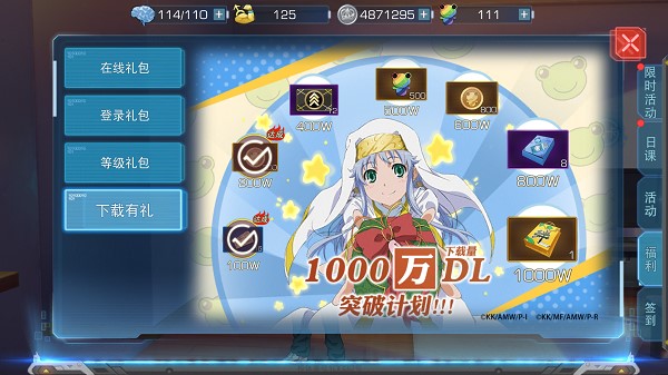 为了答谢10年以来一直坚定支持《魔法禁书目录》系列的原作粉丝和被趣味玩法吸引的新玩家,《魔法禁书目录》正版官方开启了1000万下载量突破计划,下载量每突破一定数目玩家均会获得相应福利。在玩家们的支持下,日前《魔法禁书目录》手游达成了400w下载量,12张紫色羁绊经验卡将会如期发放给全体玩家,可获得8000点羁绊卡经验。500w、600w、800w、1000w福利也已经为玩家们准备好。随着下载量的持续增加,玩家们有机会解锁大量呱太、大量游戏币、角色情报福袋和金色羁绊卡。也请各位适格者继续努力提升,让魔禁势力变得更强。