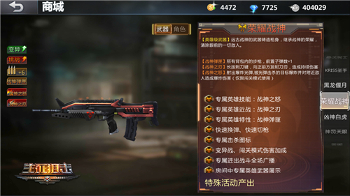 战神降世,一切虚妄都将被净化,最终化为炽热战意,《生死狙击》手游全新英雄级步枪武器荣耀战神耀世登场!掌控远古战神的武器,完成最为流畅的击杀,化身95系步枪的顶级存在,只为再现枪神神话。 远古战神铸就神器,性能卓越值得拥有 在全新的《生死狙击》手游版本中,新的英雄级步枪武器荣耀战神已经上架。荣耀战神是一把新的英雄级步枪,由远古战神的武器铸造枪身,在继承了战神的荣耀之后,枪神环绕着战神的怒焰,而每一次的射击,均是一次怒火的迸发,由枪口喷射而出,混然一体。上护盖散热槽涂抹的如敌人的鲜血般的耀红,枪身的“TYPE 95”也揭示了荣耀战神延续95式系列正统。 每一把英雄级武器都会有着自己的特色,而全新的荣耀战神,在精准度、便携性以及稳定性三个方面,远远超出我们的预期。与其他同属95系的武器以及其他的英雄级武器相比,荣耀战神在这三个方面均有着明显的优势,在对战中,也会给我们提供更为稳定的精准输出。 特殊技能助力战场,专属近战攻击很抢眼 当然了,英雄级武器的特殊技能也是我们最为期待的元素之一。与常规武器右击的近战效果不同的是,荣耀战神的右击将会触发技能“战神之刃”,“战神之刃”将会激活刺刀键向前方发射刀刃,造成持续性的伤害,并且荣耀战神的“战神弹匣”技能,会让我们所有背包内的步枪的前置子弹数量+1。而在闯关模式中,全新的“战神之怒”技能让我们可以射出爆炸光弹,被光弹击杀的目标将会爆炸并对附近敌人造成爆炸伤害,配合变异战、闯关模式伤害加成的被动属性,让我们可以轻松玩转PVE。 除此之外,荣耀战神还自带专属进出战场的全场广播以及专属击杀图标,快速换弹以及快速切枪这些英雄级武器的基本功能自然不在话下。当然了,各种经验加成也是应有尽有,加快我们的升级进度。这样的一把神兵利器该如何获得呢?参与游戏内“荣耀战神 英雄步枪”的活动即可! 了解更多相关信息,请前往http://sy.yzz.cn/ku/ssjjsy/ |