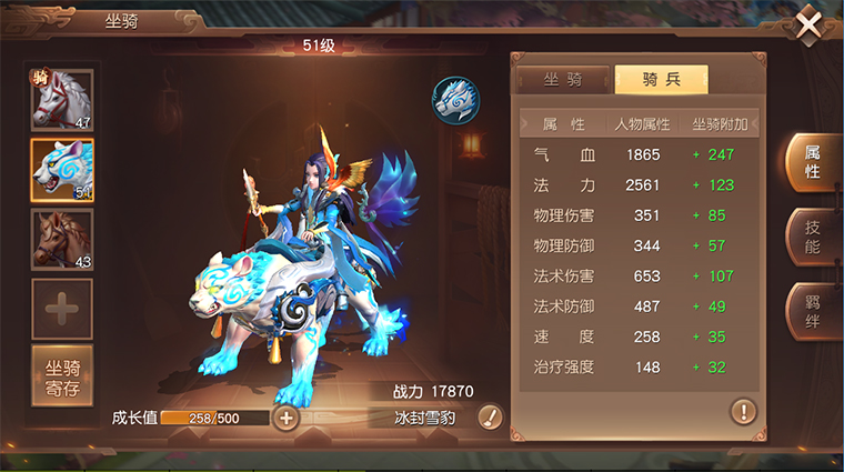 三国时期英雄辈出,也出现了许多传世名马。在《三国如龙传》中,坐骑不仅是身份的象征,更能在战斗中助玩家一臂之力,扭转乾坤。那么下面就让小编给大家介绍一下游戏中的坐骑系统,希望能帮助各位玩家培养出强力的坐骑,驰骋沙场! 名马初养成 坐骑的等级是决定战力的重要因素,将坐骑设置为骑乘状态,就可以在战斗、任务中获得经验。除此之外,还可以在金币商城中购买驯兽秘术为坐骑增加经验。在达到一定等级后,坐骑与角色的羁绊将会解锁,对角色属性有一定的加成,增强玩家的整体战力。 在游戏中,坐骑还有饱食度的设定,当坐骑的饱食度过低,玩家将无法坐乘该坐骑。玩家对坐骑的骑乘和战斗等操作,会消耗一定的饱食度,二通过给坐骑投食烹饪物品则可以恢复坐骑的饱食度,时刻关注坐骑饱食度非常重要。 坐骑的成长值对坐骑的属性成长十分重要,成长值越高,提升的属性越高。通过育培丸、强力育培丸提升,育培丸可以通过副本积分兑换,强力育培丸可以通过金币购买。 坐骑参战,逆转乾坤 在战斗中召唤坐骑,玩家将会变成骑兵形态。召唤坐骑的当前回合,玩家会根据坐骑的血统,获得不同的血统效果。变成骑兵后,玩家角色会获得坐骑二级属性的0.2倍属性加成,同时将可以施放强力的骑术技能,战力得到极大提升。 名马良驹,多种选择 目前本版共有十余种不同的坐骑可供选择,每种坐骑都各有千秋,拥有不同的血统效果。以赵云的坐骑夜照玉狮子为例,其血统为仙马之裔,入场时可回复己方全体单位一定气血,合理把握召唤时机可以帮助玩家扭转逆势,反败为胜。 了解玩坐骑系统玩法之后,大家心里是不是迫不及待的想要培养自己的强力坐骑呢?赶紧进入游戏,与自己的坐骑一同驰骋三国,鏖战天下吧! 了解更多相关信息,请前往http://sy.yzz.cn/ku/sgrlc/ |