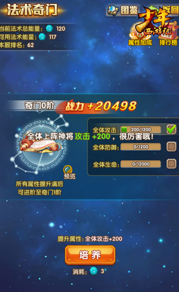 金法助阵,神将对决!西游卡牌王者之作《少年西游记》新版本“用兵如神”现已上线。在该版本中,跨服单人PVP大赛“雷音寺论道”正式开启,带来全新神将SOLO玩法。此外,特色玩法“法术奇门”登录三界,玩家可通过培养奇门等级,激活整体阵容属性加成。 全新版本“用兵如神”上线 排兵布阵 首开神将SOLO玩法 玩家通过拖动神将位置调整布阵 全新的单人竞技玩法雷音寺论道与传统6V6竞技模式不同,每场比赛由6名神将分别出战6场战斗,分别进行2场1V1、2场2V2和2场3V3比赛,玩家可以通过拖动神将位置来调整布阵和选择站位,每个神将只能上阵两次。 竞技排行将获得丰厚收益 该玩法不再局限于阵容上的比拼,而是考验玩家排兵布阵和神将的整体能力,具有一定的策略性和趣味元素。同时,参与每赛季的排行还可获得红法术书资源,可谓集收益与趣味策略为一体。 法术奇门 进阶激活全属性加成 进阶奇门等级可激活全属性加成 除了全新竞技玩法登场,法术养成玩法——法术奇门也将在新版本中开启。在该玩法中,玩家可通过提升法术奇门属性进阶奇门等级,进而增强整体阵容属性,从而在对战中占据优势。 金法术带来全新法术充能玩法 此外,全新的金色法术也将在新版本中首次登场,并带来特色法术充能玩法。法术充能可在战斗中吸取能量,并在特定时机释放,起到吸取敌方神将攻击等效果。同时,金色法术的法术奥秘和技能将更加强力。 图腾护佑 开启全属性加成 图腾护佑可开启属性加成 同时,新版本还开启了仙灵养成系统——图腾护佑,玩家可收集图腾印记用以升级图腾,图腾升级将为全阵容提供属性加成。同时,图腾能为玩家提供三条随机天赋,可增强全阵容属性或仙灵属性。 《少年西游记》全新版本“用兵如神”即将登场,为玩家带来全新竞技玩法和法术养成系统,更多精彩内容请关注官方的后续公告。 4亿玩家期待—西游卡牌王者之作《少年西游记》,携史上最高福利全面来袭!首周即送40000元宝,7日送孙悟空!爽快通关激斗,酷炫法宝合击,唯美清新画风,热闹弹幕聊天…少年无忧,快意游三界! 了解更多相关信息,请前往http://sy.yzz.cn/ku/snxyj/ |