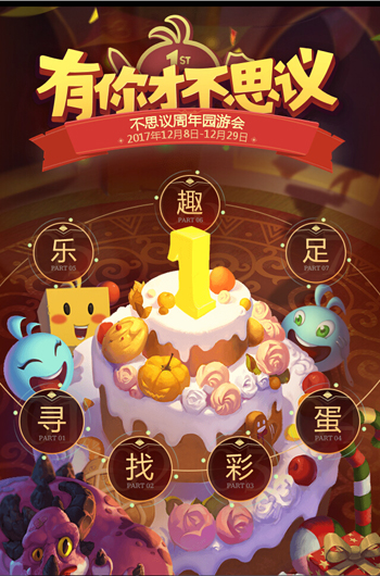 12月8日,《不思议迷宫》迎来了一周岁生日,收到多多生日祝福的冈布奥们欢天喜地办起了生日园游会,并为各位冒险者带来了“寻找彩蛋乐趣足”七大福利活动:探险试剂的调味艺术、涉及历史的趣味答题、乖巧可爱的生日伴手礼、抓Peter地图彩蛋、收集材料做蛋糕、周年庆专属迷宫、不定期且好玩的分享内容,你还不快收拾行装参与冈布奥的欢乐园游会! 寻:定向越野调味练习 为了调制出最美味的调味料,厨师冈布奥特意准备了定向越野“调味练习”,单次迷宫同时拥有6种探险试剂,寻找到迷宫中材料可以调制出各种各样的试剂,更有厨师冈布奥的拿手菜和女仆装的诱惑神秘任务等你来挑战,每完成1个任务即可领取相应奖励。 找:考验知识量的烧脑答题 好学的冈布奥在周年庆期间也不忘为冒险者们设置知识考题,活动期间将会放出3套问答题,不仅有需要熟悉游戏的“专业题”,还有这样的历史题“黄花岗起义时,开第一枪的人是谁?”真实还原迷宫烧脑本色,你还不快来试试。 彩:特色生日伴手礼 过生日肯定少不了伴手礼,勤劳的厨师冈布奥将会向冒险者们寄出3封邮件,亮晶晶钻石、可口奶油浆果、甜到心里的生日蛋糕等丰富礼物已静静躺在邮箱里,快去打开这份精心准备的伴手礼吧! 蛋:地图彩蛋抓Peter 古灵精怪的Peter偷偷从医院跑了出来,在周年庆也给冈布奥委员会惹了不少麻烦,于是抓Peter热潮由此展开,每抓住1次peter获得价值5钻的随机奖励。 乐:收集蛋糕材料欢乐多 本次园游会还推出一个重磅节目:冒险者们可在各个活动收集到生日蛋糕,并在游戏内进行提交。随着提交的生日蛋糕的数量增加,冒险者们可领取的奖励也可随之增加。 趣:周年庆趣味小迷宫 沉迷加班无法自拔的开发组们设计出了周年庆研发会议室小迷宫,制作人Vincent为了筹集投资款一筹莫展、游戏策划Danny对寻找猴子活体实验跃跃欲试、理智程序员Ben正在合理计算兼职收益......它们不仅需要进入不同的任务迷宫去筹集十万美金,还要面对投资人孔鸿达.考利昂的欠款威胁,一次惊心动魄的冒险在所难免。 足:不定期精美内容分享 在周年庆期间,冈布奥小弟还精心准备了丰富的分享活动,为把《不思议迷宫》发扬光大尽心尽力。用数字说话的趣味数据图、手绘风玩家故事图、以玩家故事为原型制作的主题曲MV.....每个分享都为本次园游会增加乐趣。园游会玩耍指南已介绍完毕,快加入我们,一起体验“寻找彩蛋乐趣足”七大活动吧! 关于《不思议迷宫》 《不思议迷宫》以Roguelike类游戏玩法为核心,通过翻开地砖遭遇各种随机事件及怪物的形式来探索迷宫深处。数十个玩法各异的地图副本,近百只特色冈布奥收集,上百款迷宫彩蛋待你挖掘,上千种组合搭配等你探险!操作简单,好玩到肝爆!且看小怪物“冈布奥”如何战胜大怪物拯救世界! 了解更多相关信息,请前往http://game.yzz.cn/html/info-2162.html |