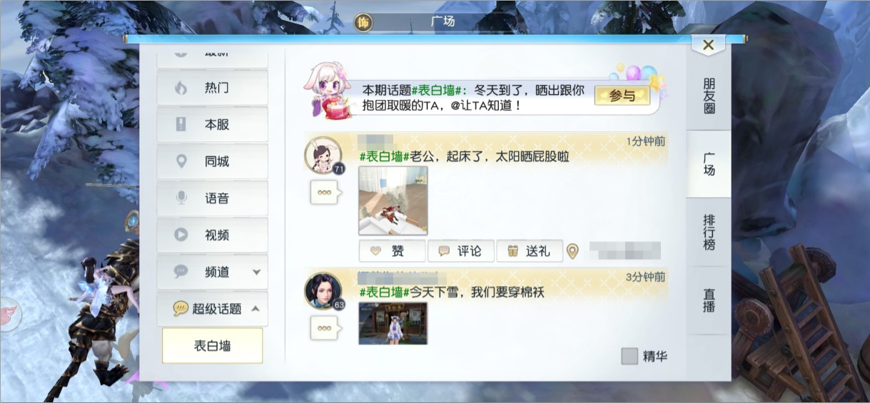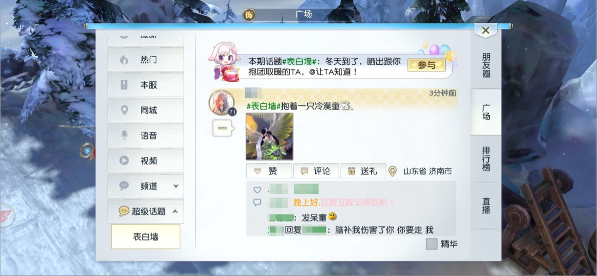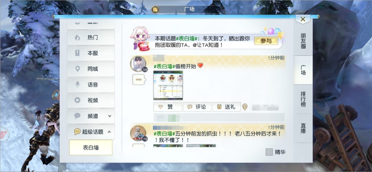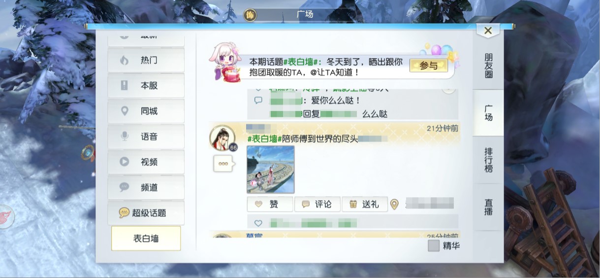 网易角色扮演治愈系MMO《镇魔曲》全民娱乐再添新渠道,朋友圈内超级话题火爆上线、公开表白甜腻无边!在这里晒出自我、秀出真性情,与朋友互动、交朋识友共闯中州!还能收获星光币、换肤妆点全新朋友圈,让天命者们成为“圈内达人”! 表白墙话题继续,超级话题火爆进行 《镇魔曲》朋友圈第一期超级话题“表白墙”已经上线,寒冬之中表白心中的TA、与TA一起抱团过冬,引来天命者们竞相参与! 天命者们只需要轻点“朋友圈”,在广场中就能找到超级话题;或是在朋友圈置顶消息中直接点击即可参与其中!截止到12月19日,“表白墙”都将继续进行,无论是兄弟义姐妹谊还是师徒情夫妻缠,只要表白就有机会获得海量奖励! 话题结束之后,收获点赞与评论前10位的天命者以及精彩表白获得加精的10位天命者将收获“人气奖”与“超级话题精华奖”,还有爱之钥、海量银币、灵兽元魂等丰厚奖励送上! 甜密无边,天命者尽情表白 在表白墙里,天命者们踊跃参与、尽情向心中的TA表白。其中有情侣、有夫妻也有师徒,让朋友圈见证这一段段真挚之情! 朋友圈内玩时尚,随心妆扮做达人 除了超级话题,天命者们还能在朋友圈里发表各类心情、信息:分享游戏小心得、招募固定团队及帮会成员、发布一段话音、拍摄一段小视频……表现方式丰富多样,让天命者们能尽情展现个性风彩。利用方便的好友关注及互动,还能随时掌握好友动态、了解TA的一举一动! 只要天命者们发布的朋友圈与其他人产生互动,无论是赞是踩都能换取星光币、解锁朋友圈主题与装饰,让你的朋友圈与众不同、成为圈内达人! 关于《镇魔曲》手游: 网易治愈系MMO《镇魔曲》,年度旗舰新版《治愈系魔法》今日来袭!全新主角—美人千面,于樱花雨下初相见,八部神众“夜樱”参上! 心之国度—全视角3D家园今日开启!中式、日式、北欧,与你携手浪漫满屋!8大主角24个战斗流派,战法牧经典铁三角,MOBA“双摇杆”操作,点对点真人自由交易,各种逗比表情花式互撩。海量玩法、海量福利。“唤醒一切美好 · 让MMO重回角色扮演”——治愈系MMORPG。 了解更多相关信息,请前往http://game.yzz.cn/html/info-1112.html |