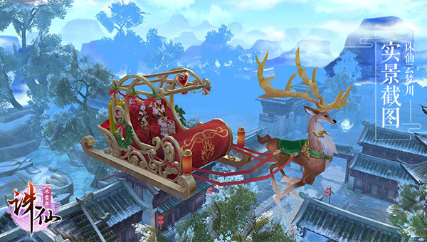 与此同时,我们还特别派送了圣诞老人的“御用”驯鹿,为你拉来华丽的雪橇坐骑!让它载着你和TA,游遍仙侠美景!