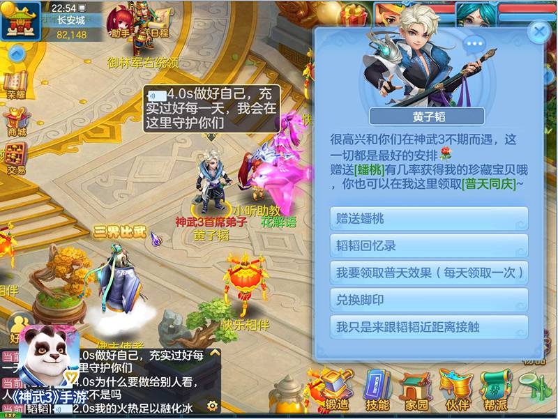涿鹿之战十人副本12月22日全服开放,群雄御敌,带给你更刺激团战感受;全新LBS玩法“虚幻入侵”即将登场,零距离定位社交,打造玩家个人生态社交圈;黄子韬亲自主持,全新帮派宴会“蟠桃宴”即将开放,与帮派好友共享水果盛宴……《神武3》手游首席弟子黄子韬定制玩法持续登场,全新内容等你来体验。 蟠桃宴玩法首爆 全新内容深度解读 《神武3》手游首席弟子黄子韬系列玩法陆续上线。由黄子韬亲自主持、以蟠桃为主题的水果盛宴,全新的帮派宴会玩法“蟠桃宴”首度曝光,全新内容即将与广大玩家见面。 韬韬成为《神武3》首席弟子后,蟠桃仙子正式授予蟠桃种植秘术,并将天庭的蟠桃宴在三界传播开来,让更多的人能享用蟠桃。12月23日后,每周二、周四、周六的帮派宴会将替换为水果主题的蟠桃宴会,帮派宴会规模达到3级、在线人数20人以上即可在帮派庭院中参与水果主题的帮派宴会——蟠桃宴,品尝水果佳肴,获得可口蟠桃。 玩家通过“蟠桃宴”玩法获得韬师兄赠送的蟠桃,并将一定数量的蟠桃赠送给黄子韬NPC,就有几率获得韬韬造型卡或者海浪徽章,每赠送一定数量的蟠桃可获得一次免费兑换桃子脚印的机会。 全新互动玩法 三界情谊录即将上线 全新NPC互动玩法全面曝光,《神武3》手游“三界情谊录”12月22日正式开启。《神武3》手游将赋予每个系统角色特有的性格和背景,这些角色们不只有自己的爱恨情仇,还将不定时发布各种类型的委托任务同玩家进行互动交流。从此,神武三界将不再是冷冰冰的虚拟世界,而是有血有肉的新世界。 玩家在帮助系统角色时,不仅能增进彼此的情谊、提升彼此的好感,随着好感度的提升可以快速拜访NPC,同时也可以拉上好友一起完成任务,了解更多系统角色的故事。 全新帮会宴会玩法“蟠桃宴”即将上线,韬韬造型卡、海浪徽章、桃子脚印海量福利等你来拿;与NPC亲密互动、了解NPC背后的故事,全新互动玩法“三界情谊录”12月22日正式上线,完成任务即可提升NPC好感度……《神武3》手游全新内容持续推出,更多玩法陆续开放,敬请期待。 关于《神武3》手游 《神武3》手游火爆公测,十人副本涿鹿之战正式开启!黄子韬化身神武3游戏NPC,携系列定制玩法入驻长安城,更有韬师兄新宠桃子即将来袭!入住《青春旅社》,还有机会与王源、景甜等明星一起遇见青春!《神武3》手游玩法丰富,系统创新,更有便捷的即时语聊、智能离线保护、自动组队等功能一定让你爱不释手!《神武3》手游还是一个强大的娱乐交友社区,选美赛、好声音赛、好友秀互动,游戏交友两不误。青春相伴,快乐神武3!更多创新玩法,尽在《神武3》手游。 了解更多相关信息,请前往http://game.yzz.cn/html/info-6348.html |