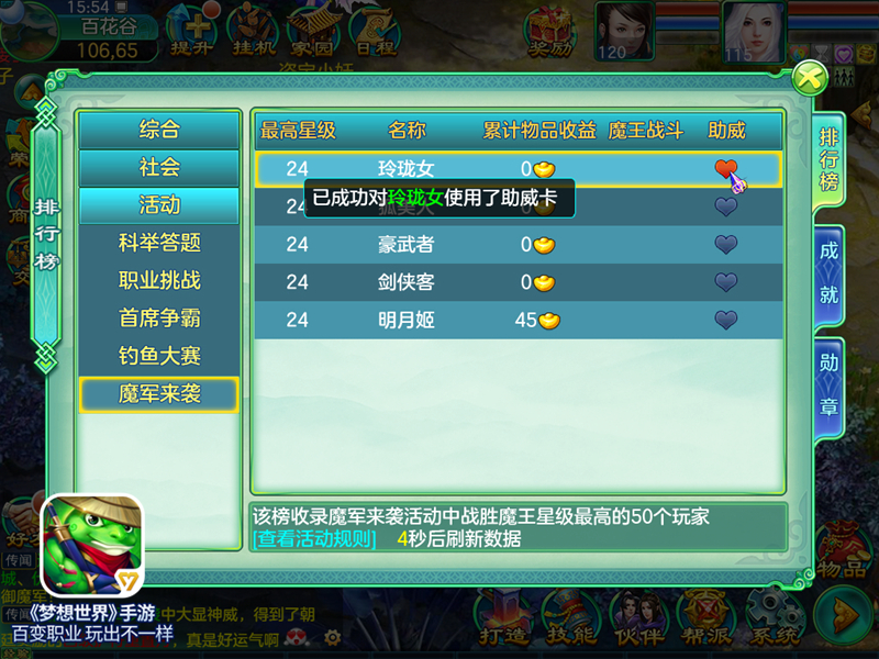 《梦想世界》手游新服“一骑绝尘”今日正式开启,全新内容“绝世武学”开辟习武之路,115级职业天赋助战回合!110级光武、115级宠物全面登场,炫酷坐骑夜豹、白龙马一骑绝尘,带你领略梦想大陆!圣诞节将至,梦想大陆突传预报,万家灯火的平安夜将有数队魔军计划来袭,更有散落在整个梦想大陆的盗宝小妖趁势作乱,大闹平安夜!平安夜的钟声不日敲响,如何抵抗魔军擒获小妖,跟着小编提前准备,方可一展身手! 暗影魔尊 强势来袭 《梦想世界》手游圣诞狂欢全新玩法即将上线!圣诞日将至,魔族暗影魔尊将率领一众魔兵魔将自中州城、北漠城和伏波港突击而出!梦想大陆提前预知危险,广发英雄帖招揽各位侠士挺身抵抗!所有参与抵抗魔族入侵的侠士均可以在排行榜榜上有名!暗影魔尊存在不同星级,击杀星级越高的魔尊,最终也将在排行榜上排名越高! 助威友军 有福同享 暗影魔尊有备而来,实力自然也是不容小觑!所有围观魔君来袭的侠士均可在排行榜上找到信赖的玩家为他助威,被助威的玩家成功击退暗影魔尊后,将和为他助威的玩家共同获得等值奖励!助威凭借助威卡,各位侠士每次击杀魔兵均有机会掉落助威卡!此番魔军来袭,不仅靠实力,更要考验各位侠士有没有一双识人的慧眼了! 盗宝小妖 圣诞大闹 《梦想世界》手游圣诞狂欢夜自然不止魔君来袭这么简单!散落在大陆各地,听闻年节将至而蠢蠢欲动的小妖也趁乱四处游窜起来!圣诞节后,在指定时间内均有盗宝小妖现身作乱,凡是等级≥30级的侠士均可单人进入战斗! 值得注意的是,小妖攻击时将会偷取侠士一定的圣诞礼物(指定道具),而侠士在战斗中成功捕捉盗宝小妖后将获得一定奖励!不过盗宝小妖十分狡猾,为防小妖战斗中途逃跑,各位侠士可要尽快击退它哦! 关于《梦想世界》手游 《梦想世界》手游,趣味策略回合手游大作!百变职业,玩出不一样!快意恩仇自由PK,奇招异式耍威风;花样宠物个性养成,携华美坐骑翅膀问鼎江湖;绿色环境,轻松任务;高颜值选秀,快乐社交,梦想世界邀你踏上全新征程!更多游戏详情,请关注多益网络《梦想世界》手游官网和梦想世界官方微信。 了解更多相关信息,请前往http://mx.yzz.cn/ |