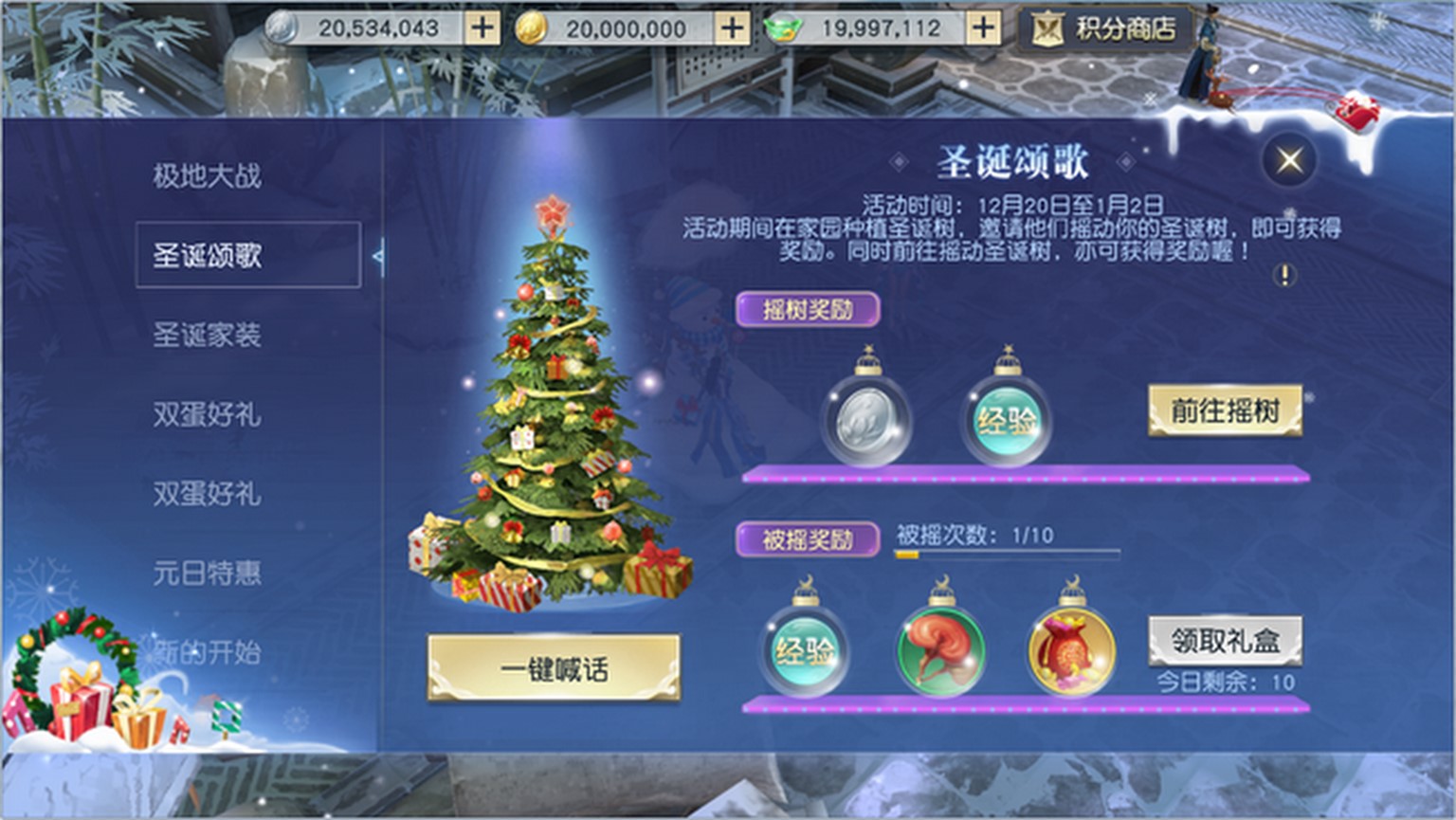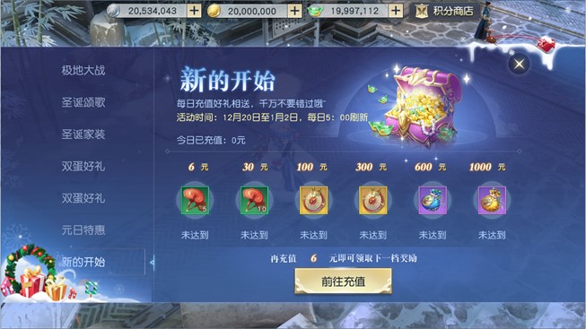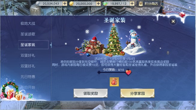 网易角色扮演治愈系MMO《镇魔曲》双蛋活动强势来袭!瑞雪兆丰年、铃儿响叮当,中州大地节日盛妆开启,各类欢乐活动全新上线,更有海量福利等你来拿!即日起直至明年1月2日,年末双蛋狂欢,嗨翻中州! 极地大战:乔妆改扮抢椅子 活动期间每天12点至13点、21点至22点两个时段,天命者们都可以参与到欢乐无比的“极地大战”之中,妆扮成圣诞老人与驯鹿、来一场别开生面的抢椅子大战! 眼明手快抢椅子、突破重围勇夺冠,每轮比赛天命者们都能拾取福袋、获得海量经验与银币等奖励,根据最终名次还有万年灵芝等大奖等着你! 圣诞颂歌:圣诞树上礼物多 在圣诞颂歌活动中,天命者们只要开启了家园就可以种下自己的圣诞树、与好友一起为新年祈福! 摇动圣诞树,天命者们就能收获经验与银币奖励;到好友的家园中作客、摇动他们的圣诞树,还能帮助好友获取圣诞礼盒、开出万年灵芝等丰厚奖励!与好友展开互动、多多收获属于自己的圣诞礼盒、把圣诞礼物领回家吧! 圣诞家装:布置新家迎新年 除了圣诞树,活动期间天命者们还能打造全新的家园装修、焕然一新迎接新年的到来!无论何种风格的装修,天命者们都能拍下家园靓照、在专属活动页面把独特的家装姿势晒给其他天命者!除了在游戏内集赞换取圣诞装饰家具外,大家还能在活动页面展开点赞排行竞赛,点赞排行榜前100的天命者还能收获限量头饰、实体周边等大礼! 新的开始:充值大礼送不停 新年新气象,《镇魔曲》大返利!在“新的开始”活动中,天命者们每天充值到一定额度就能获得超值大奖、收获丰厚返利!更重要的是,返利奖励还会有变化,不同的奖励等着天命者们领取! 双蛋好礼、元日特惠:珍稀坐骑、优惠福利别错过 在活动期间,《镇魔曲》还为天命者们备下了双蛋好礼!圣诞、元旦两种礼包限时上架,除了各类稀有道具超值放送之外,更有限时出售的珍稀坐骑奉上! 全新坐骑驯鹿儿将陪天命者们走遍中州,双人坐骑铃儿响叮当让你与心中的TA共乘雪橇车、浪漫闯天涯! 在新旧交替之际,元日仙人也将降临中州、为天命者们带来丰厚福利!各类珍稀道具优惠大酬宾,购买指定道具还有额外奖励送上,让天命者们开开心心迎新年! 活动丰富、优惠多多,还有海量福利领取,《镇魔曲》双蛋狂欢已正式启动,还不加入这场跨年狂欢盛宴、收获满满迎新年? 关于《镇魔曲》手游: 《镇魔曲》手游由镇魔曲端游原班人马打造,采用全面升级的自研NeoX2.0 引擎,实现电影级次世代画质,六大职业18个战斗流派,战法牧经典铁三角,MOBA“双摇杆”操作让战斗变得有意思,开创即时制MMO战斗新纪元!30多个野P战场,想战就战!点对点真人自由交易,海量个性时装、激萌灵兽,各种逗比表情花式互撩。《镇魔曲》手游——“原汁原味”的MMO乐趣,满足你对顶级MMO的所有幻想。 了解更多相关信息,请前往http://game.yzz.cn/html/info-1112.html |