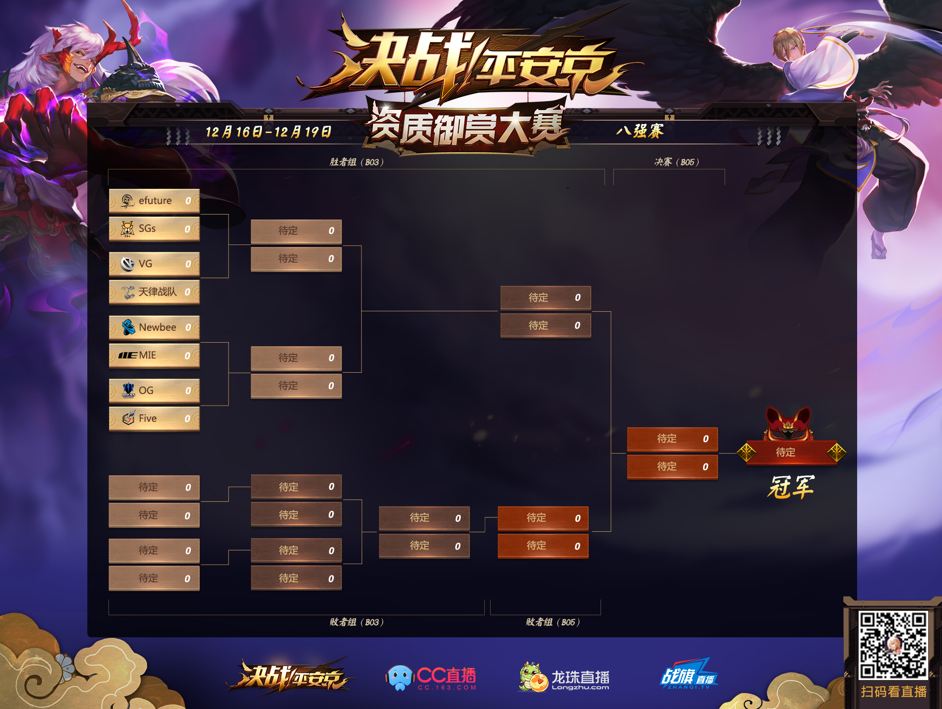 《决战!平安京》大型竞技赛事-“资质御赏大赛”,其高达30万元的总奖金,吸引了包括职业战队、知名主播战队以及在海选中脱颖而出的玩家战队集结。他们在历时4个比赛日,24个比赛场次,48个比赛单局,最终八支豪强战队挺进于12月21日进行的决赛阶段,他们分别是:A组(EFuture、Five)、B组(VG、SGs)、C组(Newbee、天律战队)、D组(OG、MIE)。 高潮迭起,玩家战队不输职业队 从小组赛的战况来看,玩家战队实力不输于职业战队,频繁秀出实力操作,挑翻职业战队,打出一波又一波的高潮!TBC逼平Efuture,桃子电竞2:0战胜老牌战队VG,天津战队和Newbee握手言和,均展现了玩家战队超凡突出的实力,相信在接下来的赛事中,玩家战队的表现绝对会让人眼前一亮,黑马实力不可小觑! 在决赛阶段将采用“双败”模式,最终冠军将在胜者组冠军与败者组冠军中决出。八支战队将根据小组赛积分排名情况进行对阵,小组第1对阵下个小组的第2,如A1vsB2、B1vsC2、C1vsD2如此循环。 职业解说助力赛事直播 在小组积分赛中,由枪炮玫瑰、阿如、彦灵灵、乔野等知名解说组成的解说天团在CC直播平台上进行了精彩解说,将双方对战的核心亮点解说的淋漓尽致,为玩家带来视听的双重享受。在八强淘汰赛阶段,他们会带来怎样酣畅淋漓的解说,也是十分值得期待的! 8支战队角逐30万现金奖励 8支豪强战队,将角逐本次《决战!平安京》的最强桂冠,抱走12万元冠军现金大奖!除了高额的冠军奖励外,亚军和季军也会分别得到6万元和3万元的现金奖励,其他8强战队和16强战队也会分别获得1万元和5千元的现金鼓励!除此之外,还有高端《阴阳师》周边包括阴阳师棉麻家居服、八百比丘尼抱枕等送出! 敬请锁定CC直播,拭目以待三十万现金大奖瓜分盛宴,观看赛事直播,将有机会领取限量周边如神乐手办、妖刀姬手办等大奖,还有不定时网易猪肉卡、京东卡等送出,更有iPhoneX、万元现金豪礼相送! 了解更多相关信息,请前往http://game.yzz.cn/html/info-6377.html |