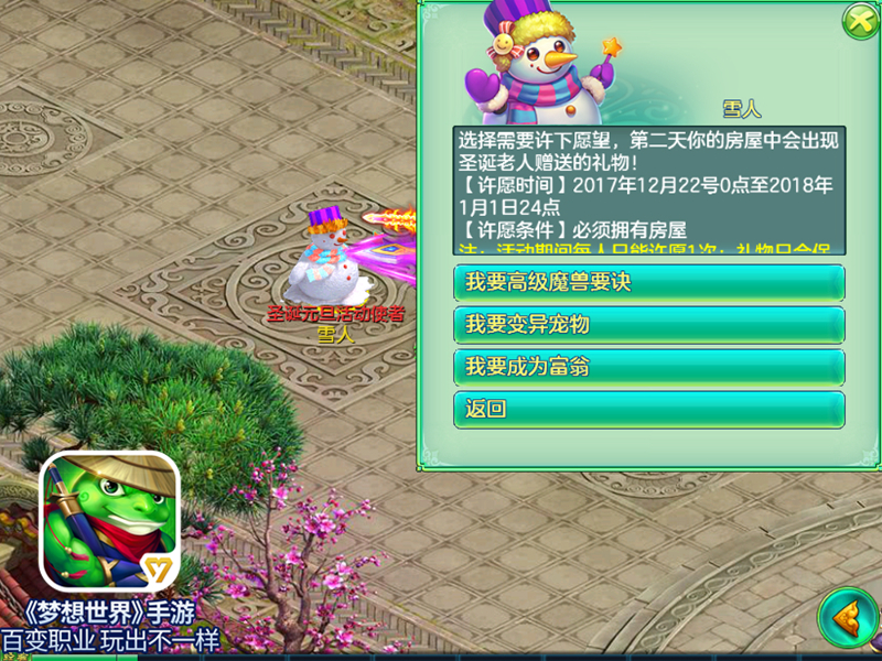 《梦想世界》手游新服“快意恩仇”今日正式开启,双旦玩法全面来袭!圣诞将至,圣诞老人即将降临梦想大陆为各位侠士派发准备了一年的惊喜礼物!想要知道如何将自己想要的圣诞礼物传达给圣诞老人,这份惊喜攻略不得不看! 新服冲榜 赢神兽源生 新服冲榜活动随新服同步开启,新服奖励分为排行榜类奖励和首次到达类奖励。 在开服第30天的20:00时统计数据,活动排行榜前3均可获得丰厚奖励,在服务器内首次达成某些成就后也会获得奖励,排行榜前两名的玩家更是可以直接获得神兽、珍兽源生之灵奖励,另外还有海量变异还童丹、高级兽决、头像券、银币等丰厚奖励等你来拿! 庭院圣诞树 礼物天天送 今年的梦想大陆为迎接即将到来的圣诞老人可谓精心装饰了一番!而每年准时到来的圣诞老人也许诺回馈所有梦想大陆的侠士们!在节日期间,梦想大陆装饰商城将出售精美的圣诞树作为庭院装饰,摆放在自家庭院的圣诞树不仅可以和好友一同观赏,在双旦活动期间,圣诞老人就会向拥有圣诞树的侠士家园每天秘密赠送惊喜礼物哦! 圣诞日狂欢 许愿得宝箱 一年一度的圣诞节当然不止这么简单!在圣诞节期间,只要在NPC圣诞元旦活动使者——雪人许下圣诞愿望,第二天将在自己的家园中收获圣诞老人赠送的惊喜礼物! 关于《梦想世界》手游 《梦想世界》手游,趣味策略回合手游大作!百变职业,玩出不一样!快意恩仇自由PK,奇招异式耍威风;花样宠物个性养成,携华美坐骑翅膀问鼎江湖;绿色环境,轻松任务;高颜值选秀,快乐社交,梦想世界邀你踏上全新征程!更多游戏详情,请关注多益网络《梦想世界》手游官网和梦想世界官方微信。 《梦想世界》手游iOS版下载:App Store搜索“梦想世界”,或直接输入:http://mxsy.duoyi.com/i 了解更多相关信息,请前往http://mx.yzz.cn/ |