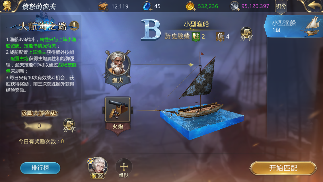 化身愤怒的渔夫,与好友一起加入这场装备、等级弱差别的3V3海战竞技!为了和船长大人们一起迎接欢乐圣诞,《大航海时代》新玩法:愤怒的渔夫即将上线!随着《大航海之路》“遗失之城”新资料片的持续火爆,你将有机会打造你的专属小渔船,用精湛的策略与好友间的默契,赢得这场海上荣耀之战,更有渔夫大礼包和炫酷称谓等惊喜福利等你来赢! 渔船碰撞 开启公平竞技 作为新资料片重磅更新内容之一,12月20日至1月2日,每晚19:30-23:30,“愤怒的渔夫”活动即将震撼登场! 凡是等级达到35级的船长,都可参加3V3跨服组队,开启公平对决(船长们可以从节日活动入口参与活动)。每位船长都需要前往港口船坞内新造自己的小渔船,船长战斗中所驾驶的渔船,除了属性和技能书产生影响外,等级,装备,爵位都将没有任何差别,一场考验操作和策略的组队竞技即将开战! 渔夫助阵 创造激情战斗 单局战斗时长为3分钟,战斗节奏将十分快速。开战前,船长可以配置渔船、渔夫技能和主炮类型;开战后,船长除了要小心应战,还要全力争夺战场中央刷新的补给包,以回复破损渔船的耐久。 战斗中,击沉另一方全部船只就直接判定为胜利。倒计时截止时,若双方仍都有单位存活,则按照存活人数、剩余血量、伤害值等标准判定胜负。 珍稀鲈鱼 炫酷称谓相送 渔夫的世界里,只有把握机会的人才能赢得丰厚的奖励。所有船长每日只有10次有效战斗的机会,在这10场战斗中获胜会获得物品奖励,而且前三次获胜额外获得经验奖励(第11-30次战斗之后的战斗,将只影响积分排行,不再获得任何奖励)。 每一局获胜后,愤怒的渔夫将会献上大礼包,打开可以获得物品奖励和大量鱼类(海币交易品),每日积分榜前3名,还可获得限时一天的炫酷称号! 以渔夫之名,与好友一起,开启一场公平的海上3V3海战竞技,更有机会赢取礼包、专属称谓等在内的丰厚奖励。更多游戏信息,请关注《大航海之路》官网、官方论坛。 |