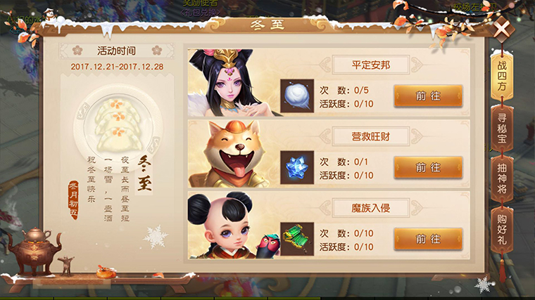 冬至盛典已于12月21日开启,六大活动让数九寒冬变得火热起来,现在上线即可参与获得丰厚奖励,更有机会在线抽神将。此外,全新神将鬼·典韦也震撼来袭,参与冬至活动获得秘书卷轴既有机会直接获得。被地狱的红莲烈火焚尽身躯的他,将拥有怎样强大的力量?现有武将阵容体系又将受到怎样的冲击呢? 红莲烈火,焚尽万物 新神将鬼·典韦是一名物攻型武将,身披烈火并拥有主动技能红莲以及被动技能地狱归来。主动技能红莲将对田字格范围内的敌人造成伤害,攻击范围内目标数量越少造成的伤害越高。此外,若目标的物理防御属性较高,则还能造成额外伤害。被动技能地狱归来每场战斗只能触发一次,让其抵御一次致死伤害,并保留80%的气血进入狂化状态,提升物理攻击和速度20%,正如技能名“地狱归来”一般,化身死神强势归来。 从鬼·典韦的技能来看,他对于如魔·吕布等物理点杀武将有着较好的克制作用,进入狂化状态后还能够造成高额伤害轻松收割对手。此外,主动技能对于高物理防御的血宠也能带来较高的伤害,目标人数越少伤害越高的技能设定能够让技能的施放更为灵活,即可作为群攻也可作为单体技能进行收割。可以预想,随着鬼·典韦的加入,武将阵容的搭配将发生巨大变化,也将更为丰富有趣。 以武会友,问鼎武圣 在上周的游戏更新之后,玩家之间可在洛阳擂台以外的地图场景进行自由切磋了。各位玩家可与对方约定单人或组队形式进行切磋,当然也可单人挑战对方队伍,通过好友列表或点击对方头像均可发起切磋邀请。 图:3: 此外,游戏排行榜中新增了“英雄谱”栏目,玩家通过相互切磋将能够获得英雄谱的段位鉴定,达到英雄谱排行第一的玩家还能够获得“武圣”的称号,聊天时更有额外标志彰显尊贵。 本次冬至盛典仍在火热进行中,活动将持续至2017年12月28日凌晨5点,赶紧进入游戏参与吧!海量福利还有全新神将鬼·典韦在等着你! 更多游戏信息关注: 官方网站:http://sg.163.com/ 官方微博:网易三国如龙传 官方微信:wysgrlz 官方Q群:519537310 |