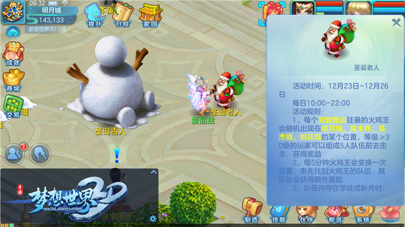全新内容物华天宝火热开启!熊猫小宝,武动乾坤!全新80级光武华丽上线,萌宠小宝降临梦想大陆!一年一度的圣诞节正式降临,大街小巷洋溢着喜庆的气息。《梦想世界3D》手游圣诞庆典欢乐开启,圣诞老人现身梦想大陆,为玩家们派发圣诞特别任务。火鸡大作战开启,全民一起堆雪人,还能解锁全服丰厚奖励。 《梦想世界3D》手游新服推荐:国色天香、锦绣河山 火鸡大作战 圣诞节期间,圣诞老人为梦想世界的朋友们准备了各种各样的惊喜和好礼。最近,圣诞厨房的火鸡不翼而飞,厨师长委托圣诞老人召集侠士帮忙捉回逃跑的火鸡,一场全大陆的火鸡大作战即将开始! 5人作战 迎战火鸡王 即日起至12月26日每日10点至22点活动期间,30级以上的玩家组成5人队伍可以前往明月城圣诞老人处报名参加“火鸡”活动,每个双数整点,狂暴的火鸡王会出现在在明月城、青木林、英杰镇、桃花岛的某个位置,每五分钟火鸡王会变换一次位置,率先找到火鸡王的队伍还会获得额外奖励哦! 全新排位赛 赛季积分 在《梦想世界3D》五人排位赛中,队员依据队伍胜负情况进行奖励的获得!在全新改版的内容中,五人排位赛由历史排位积分调整为赛季排位积分制,每1个月为1个赛季,系统依据各位侠士的赛季积分段奖励相关专属荣誉称谓!在每个月底,赛季积分前25名侠士还将获得稀有道具!为了荣誉和丰厚的段位奖励,各位侠士是否有些跃跃欲试了呢! 关于《梦想世界3D》手游 《梦想世界3D》手游今日全平台公测开启!招式靠领悟,回合真策略!见招拆招更鲜活,216种招式相生相克尽展极限回合策略。释放想象,海量玩法极具创意,闯迷宫泡温泉惊喜等你来探。碎片收集萌宠进化,宠物养成独具特色。萌娃天降,浪漫社交温情相伴,同城好友推荐,享受真实梦想人生。更有炫酷时装翅膀、搞怪头饰、清凉泳装,独特外观百变搭配任你选! 了解更多相关信息,请前往http://game.yzz.cn/html/info-2292.html |