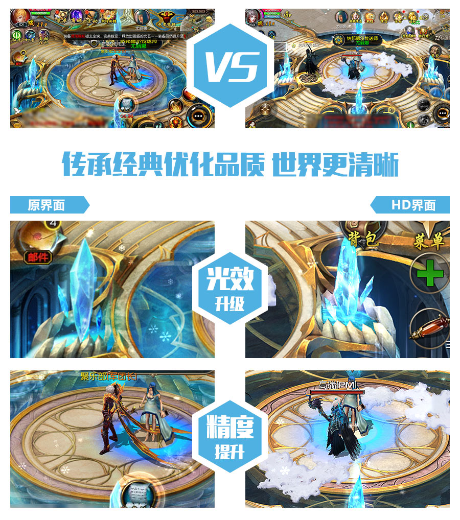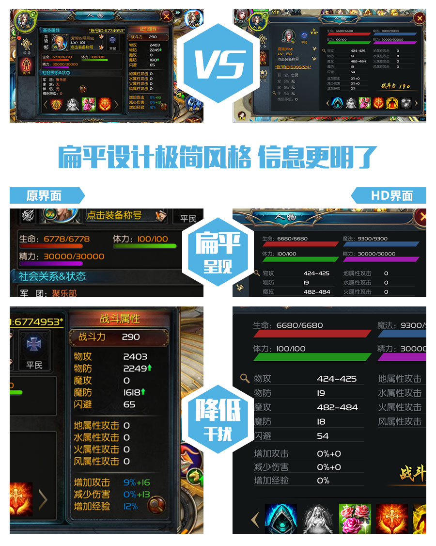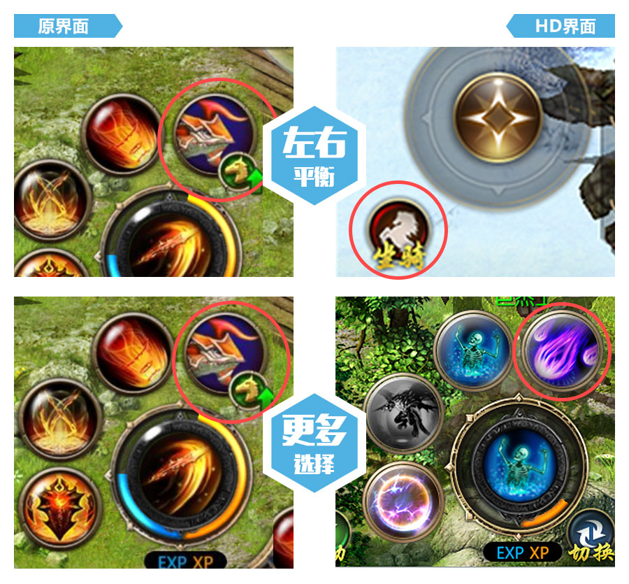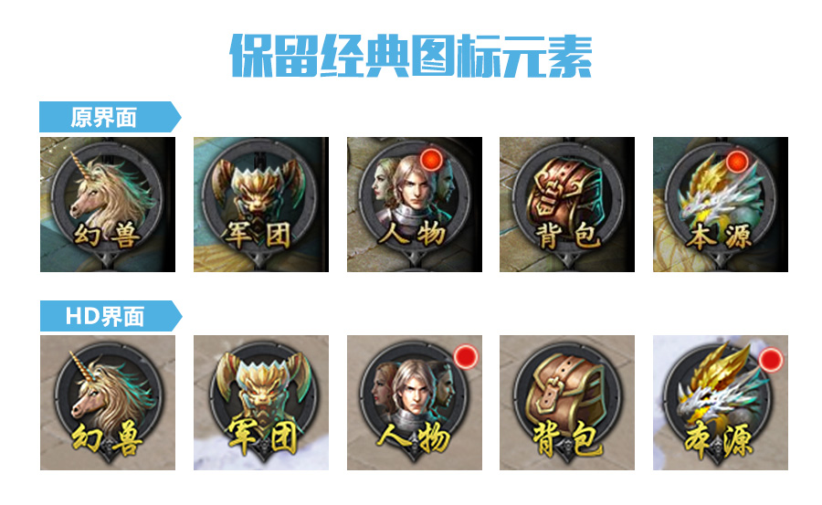 玩家们新年好,我是《魔域口袋版》的主美。新年有新貌,《魔域口袋版》也将于1月5日正式发布HD版本。这是一次全新的升级体验,我们将在HD版本中对现有版本的部分界面风格和交互方式做优化,新界面将更清爽简洁,给玩家带来更好的游戏体验。为了让大家更好地了解和适应新界面,就由我向大家介绍一下HD新界面。 新界面是为优化玩家体验所设计 此次HD新界面的设计初衷,是为了优化玩家的游戏体验。我们知道,一款产品需要不断更新优化才能趋于完善,一款好游戏更是离不开不断升级和创新,以适应和满足玩家需求的不断进化。 纵观当前经典端游IP改编的手游,如《梦幻西游手游》、《剑侠情缘手游》等,无一不是在保留经典元素和玩法的基础上做大胆创新。当前游戏市场的变化、玩家喜好的转移和同类竞品的优化,使得《魔域口袋版》必须要升级、要有新内容的更新迭代,来保证这款常青游戏始终具备旺盛的生命力。 而《魔域口袋版》也不是手游中进行界面升级的个例。以大热的MOBA游戏《王者荣耀》为例,该游戏自推出至今界面更新累计已有十来次以上,每次的界面升级都给玩家在游戏中的体验带来一定优化。我们也希望通过类似的措施,通过界面的更新升级,让《魔域口袋版》给需求不断进化的大家带来更好的游戏体验。 新界面是传承后的革新 经典味道依在 事实上,《魔域口袋版》HD版本的新界面之于传统界面不是割裂,而是传承,是经典革新。 在新界面的设计风格上,我们不仅对原有经典元素进行了保留,也考虑到当今移动端极简设计风的盛行给手机、App界面设计所带来的扁平化变革,为了让玩家在移动端的界面视觉和操作上获得更统一的体验,在设计过程中也尝试让整个界面在呈现效果上更加简洁化。 以游戏中的功能按钮为例,像幻兽、军团、人物这些陪伴着大家的经典图标,在新界面设计上我们进行了最大程度的保留,让他们继续陪伴大家的同时,也让大家可以很快找到自己所需要的功能,更快速地上手游戏。而在保留这些经典图标的基础上,我们让按钮的设计整体更加扁平,让大家可以更专注于探索游戏,了解游戏本身的内容。 新界面使画面更清晰 视野更开阔 在保留界面中魔域经典元素的同时,我们也将整体界面做了精细化处理,对游戏原有的粒子效果进行了升级。不仅使新界面看起来更加清晰干净,整体画面分辨率也提升了一个档次。就像是一部电影从高清变成了超清画质,界面升级、画质提升后的游戏所给予玩家的沉浸感也会更加强烈。 与此同时,新界面也让游戏画面所呈现的场景更加广阔。同一个地图场景下,无论是刷怪还是PK,玩家将在游戏中获得更加开阔的视野。打个比方,大家应该都有在电影院观看IMAX电影的经历。同样一部影片,观看3D IMAX会比普通3D获得更宽广的视野,获得更强的临场感。而升级后的新界面也是如此,将给大家带来游戏临场体验的升级。 新界面布局更科学 操作更便利 考虑到玩家的操作习惯,我们并没有将二级界面中的界面布局及操作方式做大的调整,仅仅是在一些涉及到展示及可读性的界面上做了重新整理,更方便玩家获得及读取游戏相关信息。 以“人物属性”的界面为例,在新界面的布局设计上,我们针对玩家的社交以及角色属性进行了更科学地归类。左边一栏是与玩家的职业昵称社交等相关的信息,右边一栏则是展示人物各项属性值,对比过去社交信息和角色属性排列在一起的布局,新的人物界面可以让玩家更加一目了然地读取自己想要的信息。 在此之外,我们在主界面上做了相对较多的优化。在考虑到玩家的操作习惯后,我们将系统菜单(如技能等)及常用按钮(如商城等)做了一个整合,原先需要做3-4层操作才能打开的界面,现在只要1-2层即可打开,整体操作更加便利快捷。 这里我们选取了主界面的常用按钮和野外战斗的系统菜单来对比,可以看到,新的交互对菜单布局和战斗的功能键位置做了优化,目的是为了提升玩家操作的便捷性。 过去自动战斗按钮和方向键都在同一个位置,玩家在战斗过程中需要将右手从技能栏的位置移至左上角点击或者停下移动使用左手去点击,整体切换过程较为缓慢。而在新界面中,自动战斗按钮被挪至了右下角,玩家在释放技能过程中只需右手拇指轻轻移动下即可实现切换。 而在技能操作上方增设的两个物品栏,让玩家可以放置自己在战斗中所需要的随机卷轴或药水,在战斗时不用再切换技能栏点击物品。这个操作过程中所省下的时间,可能就会让玩家在PK或者是刷BOSS时为自己夺得关键的一两秒,在对手放出必杀招之前完成转移或者恢复状态。 同时,我们将原本的骑宠按钮从技能栏里独立出来,挪至左下方,对原本有限的技能栏进行了位置释放。在其他三个技能冷却时,玩家不用通过右下角的切换操作,就可以比过去多一种技能选择。 除此之外,还有许多操作交互上的优化,待新界面上线后,大家可以进入游戏中亲自探索一番。值得一提的是,这些交互上的优化许多是源于广大玩家的实战反馈,在此也要特别感谢玩家们对我们的支持和帮助。 可以说,新的界面和交互方式都是针对原有界面进行更合理的布局,玩家刚上手可能略感不适应,确实需要一些学习成本。但在习惯后就能更加便利,也可以获得更好的游戏体验,大家不妨试试看。当然,在大家适应新界面的期间,我们