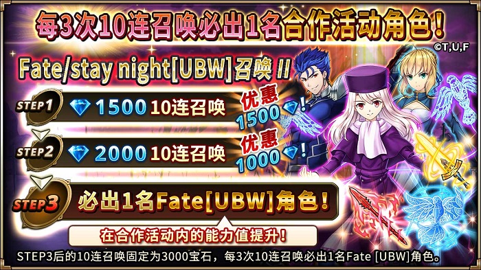 日系殿堂级RPG手游《神域召唤》国服全平台公测中,目前与Fate/stay night [Unlimited Blade Works](以下简称Fate/saty night [UBW])的联动也在火热进行之中。2018年,《神域召唤》还会给玩家们带来什么样的丰富玩法呢?据悉,国服的第二波联动也在企划中,就让我们拭目以待! Fate/saty night [UBW]合作第二阶段开启! 官网最新消息:《神域召唤》国服全平台公测,给中国玩家带来联动大礼!首波就和日本“蚁后级IP” Fate/saty night [UBW]开启联动。目前联动合作的第二阶段也已经开启,十连召唤半价优惠等多重活动上线!Saber、伊莉亚丝菲尔、Lancer获得可能! Fate/saty night [ubw] 召唤Ⅱ登场! Saber、伊莉亚丝菲尔、lancer获得可能! 活动时间:2017/12/29 15:00 ~ 2018/01/14 15:00 第1次十连召唤:半价优惠 第2次十连召唤:优惠1000宝石 第3次十连召唤:必出1名合作角色 ※第3次十连召唤结束后,每3次十连召唤必出1名合作角色 ※每10次十连召唤必出Saber 国服联动第二弹企划中 更多顶级IP或加入? 之前,《神域召唤》官方也透露,Fate/saty night [UBW]只是联动的第一弹,让玩家对后续的联动也更加期待。《神域召唤》在日服曾经和《初音未来》、《拳皇》、《街霸》等顶级IP联动,国服接下来会引入哪些IP联动,近期也引起不少玩家讨论。之前盛大游戏也放出了ACG的应援企划,其中如《辐射避难所》、《龙之谷》等知名IP也在其中,这些是否也会成为后续联动的品牌,也令人遐想。 《神域召唤》(日语名:ヴァルキリーコネクト)是盛大游戏继《扩散性百万亚瑟王》、《锁链战记》后又一款日系殿堂级RPG手游。在日本App Store排行榜曾拿下第3名的成绩,累积下载突破1200万。本作以北欧神话为背景,玩家们以冒险者的身份被召唤从而连携发生的冒险故事。广冈政树等大师级画师创作游戏人设,泽城美雪、杉田智和等全明星豪华声优阵容加盟,独特的可视化角色培养体系以及15位角色同屏激战的BOSS连携玩法给中国玩家带来100%日系血统游戏乐趣! 了解更多相关信息,请前往http://game.yzz.cn/html/info-6133.html |