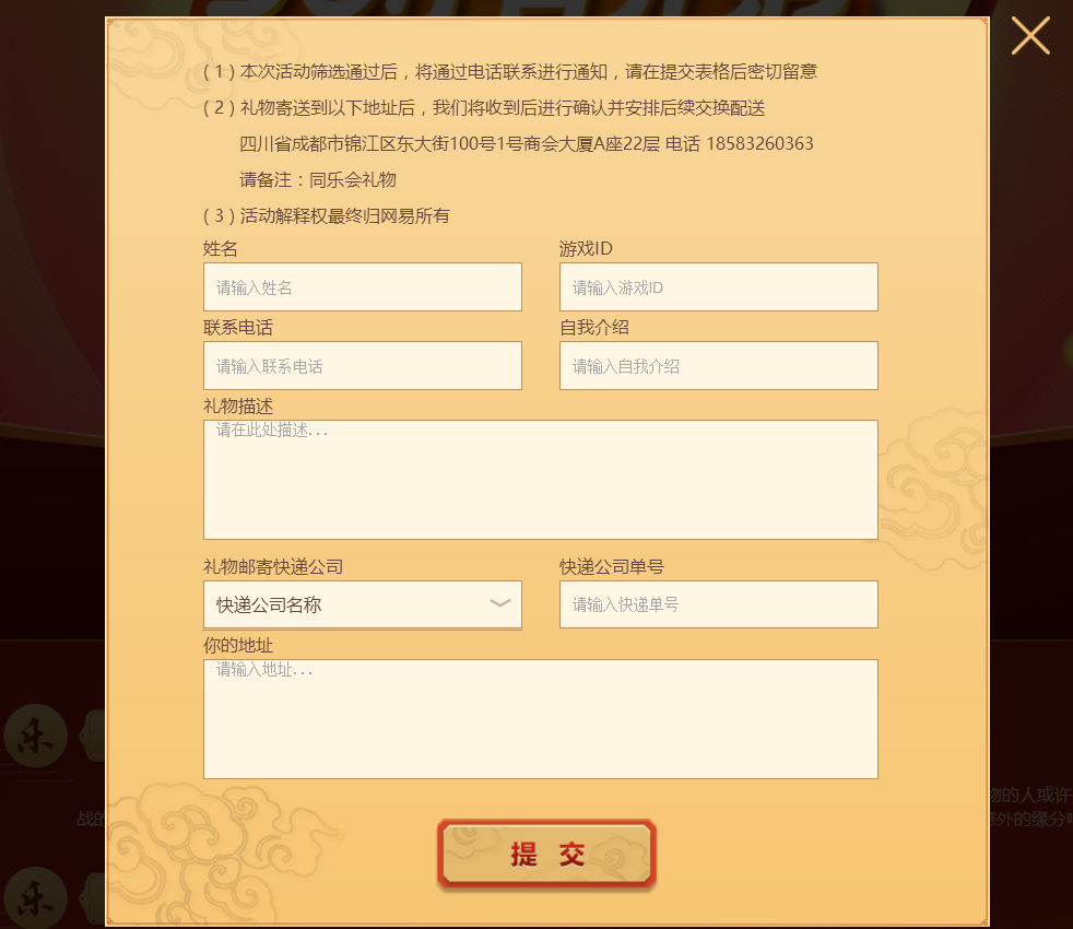 大话兄弟情,同乐赢豪礼。1月26日,《大话西游》手游玩家同乐会即将火热开启,同乐会重磅明星阵容也在今日抢先曝光,“嘻哈包袱铺”人气成员陈曦、金霏即将欢笑助阵,更有《中国有嘻哈》人气选手孙八一,现场发布最新单曲。即刻登录同乐会专题页面,参与同乐会主题活动,即有机会携手好友与众多明星现场互动,更有机会获得陌生友人的神秘情义好礼! 孙八一领衔 同乐会明星阵容抢先曝光 (知名rapper孙八一) (嘻哈包袱铺人气成员:金霏(左)、陈曦(右)) 作为献给玩家的又一专属福利,此次大话同乐会,不仅将邀请到知名搞笑天团“嘻哈包袱铺”中人气成员陈曦、金霏,带来趣味十足的大话相声专场,陪大家一起爆笑同乐,《中国有嘻哈》全国15强、人气rapper孙八一也将到场助阵,现场演唱其最新单曲,更多同乐会专属明星福利,也将陆续曝光,让我们一同期待吧! 以礼聚友 收获情义好礼 在大话江湖闯荡许久,让你结识了许多默契十足的兄弟,你们也许素未谋面,但拥有着无可替代的珍贵记忆。这一次,大话将为你牵线搭桥,邀你与江湖友人以礼聚友,交换彼此最珍贵的情义好礼。 2018年1月2日至16日活动期间,为素未谋面的大话好友寄出你的情义礼物,登录大话同乐会专题页面,准确填写你的个人信息与礼物信息,官方收到确认后,即有机会通过礼物交换的方式,收到代表玩家心意的神秘情义礼物,同时收获一段来自大话兄弟的意外缘分! 以才聚友 邀你携手兄弟同乐 生活中个性十足,才艺满满的你,有想要和兄弟们一同分享的才艺吗?这一次大话同乐会,游戏还为所有玩家准备大话才艺征集活动,给你一个展现自己才艺的全新舞台,邀你秀出最拿手的才艺绝活! 即日起至14日,录制你的专属才艺节目视频,并投递至大话官方邮箱即可参与此次大话同乐会才艺展示活动。 官方将筛选出符合要求的优秀作品在官网上展示并发起投票,作品票数排名前四的玩家,不仅可以在同乐会现场展示才艺,更可以携带一名您的兄弟一同前往线下,欢聚同乐会,大话将为你承担所有的差旅费! 随着《大话西游》手游大话同乐会专题页面开放,同乐会明星嘉宾也在今日抢先曝光,《中国有嘻哈》人气学员、超人气rapper孙八一即将重磅现身同乐会现场,为玩家送上新歌在内的专属福利,同时,“嘻哈包袱铺”人气成员陈曦金霏也将逗乐现身,带来大话同乐会相声专场。秀出你的个性才艺,赢取与好友携手共赴大话同乐会机会,更多游戏信息,请关注《大话西游》手游官网、官方论坛。 了解更多相关信息,请前往http://xy2.yzz.cn/sy/ |