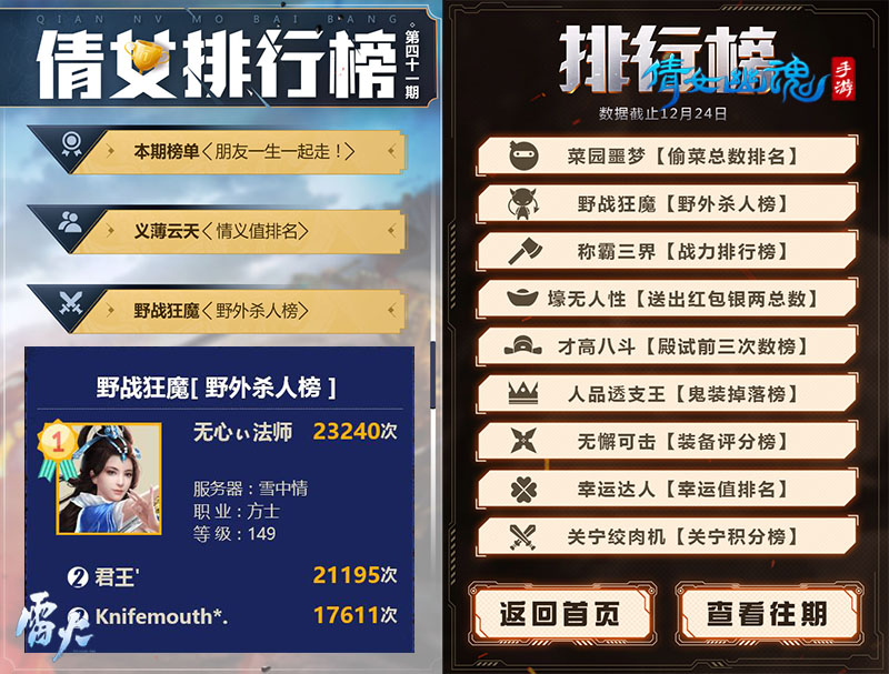 倩女手游膜拜榜41期 三冠王再夺明星赛魁首!