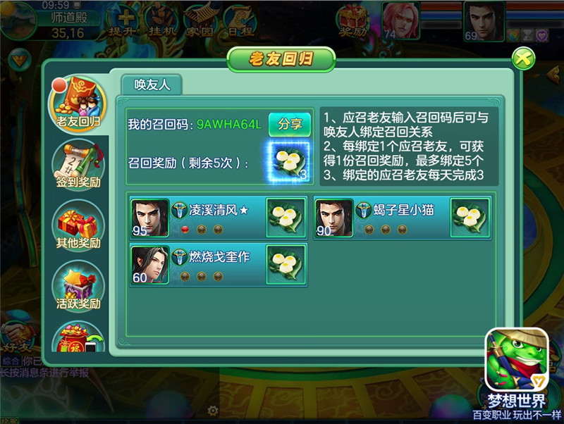 《梦想世界》手游新服“快意恩仇”今日正式开启,全新内容“梦想环游记”即将开启,全新狗年神兽祝你驰骋梦想!110级光武、115级宠物全面登场,炫酷坐骑夜豹、白龙马一骑绝尘,带你领略梦想大陆!新年元月,《梦想世界》手游为大家带来了全新的回归福利,快来看看! 【推荐新服】iOS安卓跨平台新服“快意恩仇” 狗年神兽 降临梦想 来自梦想大陆的招财旺,它拥有可爱的外表,内心却渴望成为强大的神兽。招财旺拥有强大的团队作战能力,彼此心有灵犀,与族群一起征战时能发挥出更强的实力。 群犬出征 独有天赋 神兽独有的天赋六畜兴旺,己方场上每多一个拥有此天赋的单位,则自身对敌伤害增加3%,受到伤害减少3%,招财旺自带高级必杀、高级偷袭、高级迅捷、连击等技能。 江湖情深 唤友回归 在活动期间,等级≥30级的少侠会获得一个召回码,成为唤友人。召回码给应召老友输入绑定,双方均可获得奖励,另外绑定的应召老友完成活跃任务,唤友人也可以获得奖励。 关于《梦想世界》手游 《梦想世界》手游,趣味策略回合手游大作!百变职业,玩出不一样!快意恩仇自由PK,奇招异式耍威风;花样宠物个性养成,携华美坐骑翅膀问鼎江湖;绿色环境,轻松任务;高颜值选秀,快乐社交,梦想世界邀你踏上全新征程!更多游戏详情,请关注多益网络《梦想世界》手游官网和梦想世界官方微信。 了解更多相关信息,请前往http://mx.yzz.cn/ |