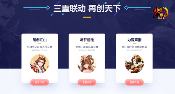 由中国著名编剧、策划人史航领衔加盟的《少年三国志》“创·三国计划”今日正式开启,该计划为玩家带来了三重平台联动和福利狂欢等五大惊喜。玩家通过参与平台活动,将有可能被选为年度客座策划,与史航一同开启全新的世界观序幕。 创·三国计划专题链接:http://sg.youzu.com/chuang3guo “创·三国计划”今日启动 大师史航领衔 重塑少年三国 “创·三国计划”囊括数百位武将传记、国家纷争、玄幻传说故事,讲述了东汉末年,一名未来少年为调查历史错乱之谜,只身来到乱世,他的传奇故事和冒险经历将构筑起整个“少年三国”的世界。 三重平台联动开启 参与赢万元奖金 平台联动活动今日开启 此外,“创·三国计划”还包括了小说、同人绘画、声优剧等三大模块,涵盖世界观塑造、同人文化、舞台话剧等多项领域。届时,玩家可通过纵横中文网原创文章征集、涂鸦王国绘画大赛、吴江锦时书“襄樊之战”三重平台联动活动,参与到“创·三国计划”中,与史航一起再塑三国世界。 纵横中文网x《少年三国志》联动活动“笔创江山” 在本次联动活动中,史航将与游戏策划团队组成专业评审团,由他们评选出来的优胜玩家,不仅可获得万元奖金、iPhone X、游戏客座策划称号等豪礼,其作品还有可能成为游戏世界观的一部分,共同铸造起“少年三国”世界的基石。 解锁神秘武将 王者重披战甲 神秘武将重披战甲 不仅线下活动精彩纷呈,游戏内也即将迎来全新版本“乱世巨变”,该版本将推出全新天下GVE玩法“仙尊试炼”、养成玩法“铭文纹饰”以及全新活动副本——“神将传奇”等诸多精彩内容。届时,玩家将与传奇武将一起经历史诗战役,并可抢先体验到他们的技能展示。 福利狂欢 焕新登场 六大福利激燃“创·三国计划” 《少年三国志》“创·三国计划”现已全面启动,玩家登录游戏即可领取金宠碎片、元宝等海量资源奖励。此外,玩家还可参与“字卡兑换”、“周边大放送”等一系列的福利狂欢活动,获得少年限定变装、绝版称号等豪礼。 福利狂欢活动期间,官方微博、微信、贴吧等社区平台的活动也同样丰富,玩家只要参与并进行留言互动,就能轻松赢取绝版周边、豪华游戏礼包等活动奖励! 《少年三国志》官方微信:sg_youzu 《少年三国志》官方微博:@少年三国志 《少年三国志》官方网站:sg.youzu.com 了解更多相关信息,请前往http://game.yzz.cn/html/info-5159.html |
