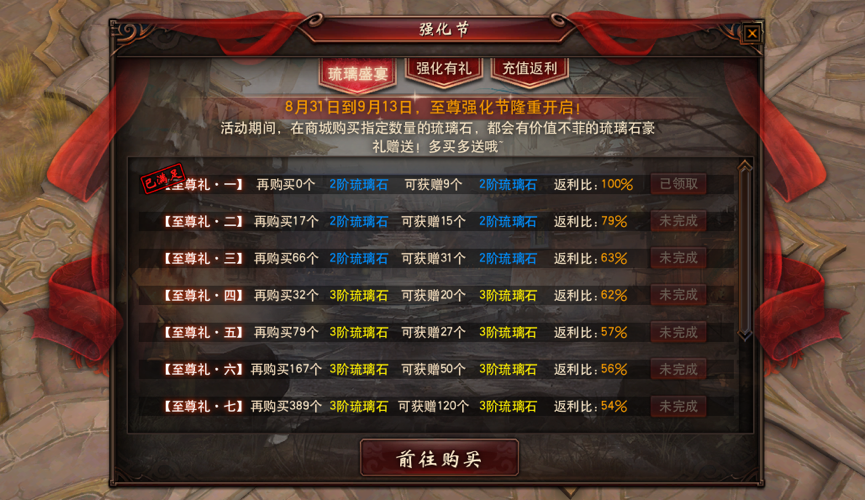 网易大型精品MMO端游《镇魔曲》全新服务器【玉树临风】,已于今天(5月4日)中午12: 00正式开启!“强化节”火热来袭,荣耀殿堂、新服活动、黑市悬赏等同步上线,为玩家 们铺好全新征途的起点! “强化节”来袭,琉璃石大派送 《镇魔曲》新服【玉树临风】开启之后,备受玩家们好评的“强化节”也将开启!玩家们 只要购买琉璃石就能获得返利赠送!买得越多送得越多,让玩家们能放心强化装备,再也 不用担心琉璃石不够用! 最给力的是,玩家们强化装备也能继续获得琉璃石!只要把装备强化到对应的等级,“强化 节”就会送上琉璃石大礼,让玩家们放开手脚任性强化,拥有强绝战斗力! 黑市悬赏、荣耀殿堂,新服福利人人有 在新服开启之后,给玩家们送现金、绑定元宝的“黑市悬赏”也将随之开启!一个月内, 玩家们只要达到对应等级,就能在各类玩法中获得悬赏的装备、道具,并在黑市中自由选 择兑换成现金或是绑定元宝,让每位玩家都能当“土豪”! 除此之外,老玩家专属福利“荣耀殿堂”也将在【玉树临风】中同步开放!老玩家们在此 之前的所有充值都能得到100%返还,其他服务器里战力最高的角色还将送上额外元宝的大 礼! 印新活动丰富多彩,助力玩家开启征程 今天中午12点【玉树临风】服务器开启之后,一系列迎新活动也将上线,每位玩家都能轻 松参与、收获海量奖励! “新人夺宝”在线领好礼,还有机会获得超值大礼包;“王城迎新”乐趣多,完成任务就 有好礼拿; “七日登陆”全面升级,海量福利点击就送;“大乐透”全民抽奖,打副本赢 奖券成为大赢家! “强化节”来袭,海量迎新活动送福利,还有黑市悬赏、荣耀殿堂等着你!《镇魔曲》新服 【玉树临风】已经开放,大量奖励等你来拿、再战沙场! 关于《镇魔曲》端游: 网易大型精品MMO《镇魔曲》端游11月24日“鹤鸣九霄”年度资料片正式上线!全 新主角八部众之傲——夜樱驾到,蛇蝎美人玲珑千面,夜之魅影杀气凛然!稀有属性首次 公开,互相克制策略博弈,全新元神系统上线;11大角色16大流派,庞大天赋树深度培 养,全新战斗流派震撼来袭;100级上限全面开放,90级海量玩法更新;史上超强旗舰福 利,全服黑市百万悬赏,老玩家零门槛追平! 官方网站:http://zmq.163.com/ 官方论坛:http://zmq.netease.com/forum.php 海量福利,请关注微信公众号:zhenmoqu163 了解更多相关信息,请前往http://game.yzz.cn/html/info-1112.html |