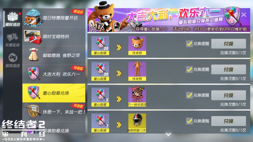 重回童年,百无忌惮!临近六一儿童节,网易战术竞技枪战手游《终结者2:审判日》为玩家准备了一系列的奇妙活动。此次更新将从战斗、时装、特色系统等方面全方向出击,让童心童趣浸染战场每个角落,让竞技玩法趣而不弱,HIGH翻炎炎夏日。 集童心勋章,玩转百变兑换 在本次更新后,玩家可以参与“大吉大利,欢乐六一”活动,该活动分为勋章收集和勋章兑换两个部分,为玩家打造六一期间的豪华福利礼包。其中勋章收集有如下途径:累积登录三天可领取20个童心勋章;在周末登录时,完成露比相关的限时任务可分别获得5个童心勋章;每日完成指定任务可获得9个童心勋章。 童心勋章可以兑换花样繁多的六一福利,这里不仅有限时时装、碎片礼盒、新品优惠礼包等奖品,还有超人气“传单熊”外装和童趣道具“快乐喷涂”。有了它们,玩家可以在战场上变身散发传单的大熊玩偶,将快乐喷绘在经过的墙壁、车身等场景中,让童年回忆更加具体,更加真实!值得一提的是,大部分道具包括快乐喷漆都只需要5个勋章,相当于登录即得,快乐无条件送给你! 而且“传单熊”外装和 “快乐喷涂”是永久属性,让你永久体验游戏的快乐! 梦幻时光,童年最向往的人气装扮 童话中美丽动人的精灵仙子、舞台上会神奇魔法的小丑魔术师、街头会散发传单与糖果的人偶大熊……这些都每个孩子童年时最羡慕的职业偶像。现在,《终结者2》的六一活动将给你变身偶像的机会!儿童节当天全服将通过邮件发放“传单熊”套装的三天体验卡,而梦幻精灵般的“晨曦鹿鸣”时装也将在商城上架。 “双面小丑”是本次童年活动的一大特色时装,如果再结合童心无忌礼盒中的“彩虹锤”道具,五彩流光的特效将成为战场上独一无二的风景线。 有了酷炫的时装与武器,自然也少不了背包的相伴,儿童节特别推出的“龙背包”系列,造型或萌动、或生动、或炫动,总有一款适合你。 射击更刺激,全新“探头”玩法上线 在全新版本中,《终结者2》还增加了第一人称的探头射击,这一系统的加入不仅增加了瞄准时的安全性,也让战场对决更加刺激惊险。在四处喷漆的童心活动乐趣之余,探头射击保持了战术竞技的游戏本质,玩家可以在回归童年的感觉中尽享技术进步带来的高级游戏体验! 收集童心印记,重享童年乐趣!5月30日,《终结者2》再次为玩家奉上全新版本,海量更新内容欢乐来袭,为玩家打造真正的百变六一玩法,更多精彩设计还需实战体验! 《终结者2:审判日》电影官方手游官网:http://t2.163.com/ 《终结者2:审判日》电影官方手游官方论坛:http://t2.16163.com 《终结者2:审判日》电影官方手游官方微博:终结者2审判日电影官方手游 《终结者2:审判日》电影官方手游官方微信:终结者2审判日电影同名手游 关于《终结者2:审判日》: 百万人同服!单局最高300人开黑!3D高清画质大世界,多元地形丰富场景,64平方公里超震撼战场,海陆空三维颠覆性对战体验;伏地硬刚听声分辨位,紧张刺激血脉喷张!载具狂飙激情碰撞,上演精彩时速之战!百变装备自由搭配,尽显独门策略战术!《终结者2:审判日》将带给你极致的快节奏枪战竞技体验! |