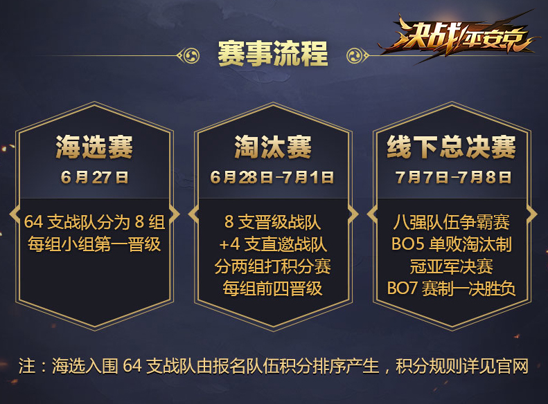 炎炎六月,平安京战场风云再起!《决战!平安京》S1季末大师赛报名正式开启。如果你想与各路高手展开巅峰对决,或是在战场上一鸣惊人,那就赶紧到《决战!平安京》游戏官网或游戏中报名吧,报名时间为6月20日至6月24日。阴阳师大人们,集结召唤式神,和强大队友一同踏上逐梦之路吧! 百万季赛,重金打造电竞明日之星 此次《决战!平安京》S1季末大师赛将云集四方大神,比赛规定报名选手段位统一在阴阳少允及以上,且每位选手的段位对应相应的积分,战队5名选手总积分排名前64的战队才能获得参与海选赛的资格。积分规则见下图,各位选手可以进行对比参考,选择恰当的战队配置进行组队报名。 为了不负玩家们的盛情参赛,此次赛事奖励丰富。八强战队不但可以分享共计100万的丰厚奖金池,还可以挑战Newbee、WE、OG、桃子电竞这四支战队的明星选手,进行一场真正热血澎湃的对决。 不仅如此,八强战队更能获得各大直播平台联合提供的重磅推广资源,享受战队专属形象包装、官方全平台曝光的优质服务,还有直播平台全程赛事跟踪,助你向平安京电竞之星的道路进发。 层层角逐,2018电竞赛事轮番启动 本次赛事的选拔分为三个阶段。6月27日将进行海选赛,64支战队将分为8组,通过单败淘汰赛角逐出组内第一名,晋级淘汰赛。6月28日-7月1日,受邀前来的“大阴阳师邀请赛”四强队伍,将与成功晋级的八支玩家队伍展开激烈的淘汰赛,12只战队将分为两组,进行BO3组内单循环积分赛。积分规则如下:局分2:0,则胜队积3分,负队积0分;局分2:1,则胜队积2分,负队积1分。最终根据总积分排名,每组前四名晋级。 最后,成功突围的8支战队将于7月7日-7月8日进行线下总决赛,进行BO5单败淘汰制角逐,冠亚军决赛将进行BO7大战。 精英云集,巅峰对决,百万奖金静待大师折桂,职业战队空降再掀狂潮,电竞之星绽然升起,既有丰厚的奖励,更有刺激的比赛,《决战!平安京》S1季末大师赛火爆开幕,快来报名,向百万季赛进发吧! 【官方网址】 moba.163.com 【官方微信】 决战平安京 【官方微博】 @决战平安京 【官方贴吧】决战平安京吧 了解更多相关信息,请前往http://sy.yzz.cn/jzpaj/ |