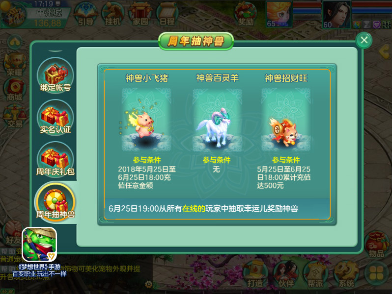 《梦想世界》手游全新内容“出神入化”今日开启,十大职业飞升系统上线,全新飞升宠物助战回合,更推出全新装备套装系统,全新场景开辟“玄空仙境”!周年庆烟花盛典庆周年,普天同庆。三周年强势送神兽,各种好礼拿不停,新服缘定三生等你来。 【推荐新服】iOS安卓跨平台新服“缘定三生” 《梦想世界》手游官网:http://mxsy.duoyi.com/ “天蚕破茧”专题页:http://mxsy.duoyi.com/act/2018/tiancan/ 缘定三生 新服等你来 梦想世界手游新服最新消息,三周年专属新服:缘定三生,正式开启。祝贺新服开启,精彩活动重磅来袭,送神兽,放烟花,共贺三周年。 烟花庆典 共庆梦想三周年 6月25日0点至24点期间,梦想大陆的各位少侠只要组队参与勇者的挑战、四圣兽、巡游天兵玩法,就有概率获得周年庆烟花,使用后可与同屏玩家共同欣赏烟花盛宴,并且可为所有等级≥20级的在线玩家增加1小时“普天同庆”的经验加成状态,再也不用中州苦等普天,这一天,大家同把普天放。 强势送礼 人人共把神兽抽 为庆祝三周年,《梦想世界》手游强势送神兽。只要等级≥40级的少侠们,周年庆期间(即日起至6月25日19点)登录游戏即可获得抽神兽资格。6月25日19点整每个服务器(除跨服外)从所有在线玩家中抽出3名幸运儿获得随机神兽。 以下为部分此次可能获得的神兽。萌宠助你称霸一方,还等什么,快去抽神兽吧! 神兽小飞猪,天赋零必杀:攻击敌方,当造成的伤害数值个位数为0时,则必定造成必杀。 神兽百灵羊,天赋必中:使用法术或物理攻击,必定命中目标;不会被反击或魔法反击。 关于《梦想世界》手游 《梦想世界》手游,趣味策略回合手游大作!百变职业,玩出不一样!快意恩仇自由PK,奇招异式耍威风;花样宠物个性养成,携华美坐骑翅膀问鼎江湖;绿色环境,轻松任务;高颜值选秀,快乐社交,梦想世界邀你踏上全新征程!更多游戏详情,请关注多益网络《梦想世界》手游官网和梦想世界官方微信。 《梦想世界》手游官网地址:http://mxsy.duoyi.com/ 《梦想世界》手游安卓版下载:http://mxsy.duoyi.com/a 《梦想世界》手游iOS版下载:App Store搜索“梦想世界”,或直接输入:http://mxsy.duoyi.com/i 了解更多相关信息,请前往http://mx.yzz.cn/ |