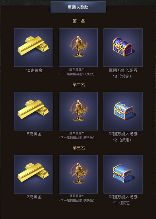 十年经典IP,全新《魔域手游》2018年首届跨服务器军团PK今日正式开战!《魔域》端游原班制作团队开发,热血魔魂再燃,2018王者争霸!《魔域手游》官方为玩家量身打造游戏内战神雕像,更有实物金条大奖送给热爱PK的你! 【五大战区 群雄逐鹿】 玩家可以通过跨服军团战守备官·尤里西斯,军饷官·杜鲁克,后勤官·梅威瑟,传送员·乌莲娜进入参与跨服战活动,战场总共有5个得分区:迷失冰原、熔岩高地、死亡荒漠、风语平原和永恒之地;每个得分区都有相应的占领进度条,进度条初始为无人占领状态;当某个服务器的军团人数占优时,该军团将占领此得分区;进度条会根据占领的时间增长,当进度条达到50%时,该军团将开始获得积分,每1秒可获得1点积分;当占领军团的人数被其它军团超越时,进度条会减少,当进度条低于50%将不再获得积分。 如何才能攻占其他军团的分区?若得分区正被某军团占领,则当有其他军团的人数超过该军团的人数时,则该军团的占领进度条会逐渐降低,当进度条降低回初始状态时,则此时人数最多的军团将获得得分区的占领权;跨服军团战期间,每隔5分钟会在战场中出现4位裁决者。参赛选手在战场内击败裁决者可获得50点军团积分,击败其它魔怪将有概率获得1点军团积分。 【跨服争霸送金条 专属定制雕像】 此次跨服军团争霸赛的大奖是由官方提供的黄金金条大奖!同时获胜的队伍还可获得游戏内的专属定制冠军雕像,受全服万人敬仰。 每场跨服军团战开赛前,神选者可为代表本服出战的紫名军团捐助军饷,资助的军饷将在每场跨服战结束后清零。当本服累计军饷数额达到一定量时,代表本服出战的紫名军团成员可获得佩戴后能临时增加战斗力的称号——仅限在获得当日的跨服军团战中使用。神选者资助军饷到达不同程度可获得里程碑奖励,奖励中含有跨服军团勋章[绑],勋章可用于前往跨服军团商店兑换珍贵礼品。 全新《魔域手游》跨服军团战盛装来袭,鏖战7月!你,准备好了吗? 了解更多相关信息,请前往http://game.yzz.cn/html/info-5295.html |