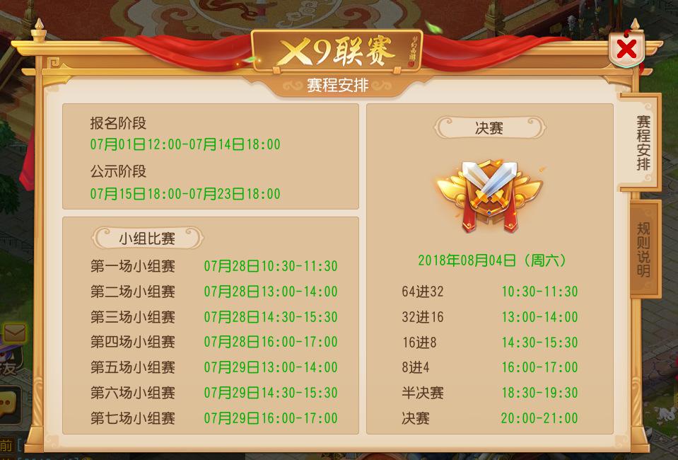 剑在三界志凌云,快意江湖谁与战?对于众多喜爱回合制PVP的玩家来说,X9联赛不仅是展示自身竞技水平的一方舞台,也是认识其它服务器PK好手的一次绝佳机会。因而,有志于此的玩家,在7月1日-14日期间,即可唤上三五玩伴组建强力战队,前往长安城X9联赛使者处,选择对应的X9组别进行报名。酷暑七月汗淋漓,但相信本届联赛上,每一位三界英豪所挥洒出的热血豪情,将更加炽热与滚烫! 《梦幻西游》手游X9联赛官网专题:http://my.163.com/2018/x9/ 燃情一夏,赛程规则详细解析 根据赛程安排,本届X9联赛具体包括四个阶段,其中: 【7月01日-7月14日】本服报名阶段,玩家组建战队后,可在联赛使者处报名; 【7月15日-7月23日】全服公示阶段,系统将根据战队综合战力评分高低,决定该战队是否获得参与跨服比赛的资格,本服综合战力第一的战队将作为种子队直接获得参赛资格; 【7月28日-7月29日】小组积分阶段,将进行7场积分赛角逐; 【8月04日】淘汰赛阶段,进行64进32、32进16、16进8、8进4,半决赛和决赛。 比赛规则方面,主要按小组赛和淘汰赛分别进行设置: 【小组赛阶段】精锐、勇武和神威都将分为甲(前128名)、乙(128-256名)、丙(剩余队伍)三组,每一组又公分为16小组,组内随机对战7场。小组赛每场战斗限60分钟,规定时间内未分出胜负,则按平手计算,以甲组为例,胜一场积9分,平3分,负1分,最终小组战绩前4名晋级淘汰赛。 【淘汰赛阶段】64强会划分到青龙、白虎、朱雀、玄武四个赛区,每个赛区16支战队进行淘汰角逐,最终赛区内的第一名进入四强。淘汰赛战斗同样一场60分钟,规定时间内战斗未结束,则将根据优先顺序,依次按场上存活玩家数、人物气血百分比、愤怒、剩余药品使用次数、当前宠物气血百分比、剩余可出战宠物数等因素判定胜负。 一触即发,热血再继悬念重重 作为《梦幻西游》手游的季度性赛事,X9联赛一年会举办4届,分别在1-2月、4-5月、7-8月和10-11月。上届联赛中,诸多X9战队于精锐、勇武和神威三大组别舞台上一较高低,燃情比拼中奉献出多场经典战役,也为无数《梦幻西游》手游玩家展示了回合制PVP的极致魅力。相信无论是稳扎稳打五门阵容的均衡流,还是主打狮驼面伤输出的暴力流,抑或是争抢一速强势控场的封印流,他们所奉献出的燃情好戏,至今依然留存在许多玩家脑海中。 而现在,战火重燃,战旗重整,新一届X9联赛报名阶段马上在7月14日18:00就会截止,积分赛的对决也即将一触即发。本届联赛上,谁能在组别对战中,突出重围登顶巅峰,以冠军荣耀加持己身?谁又能成就黑马传奇,过关斩将一战成名?而从积分赛到淘汰赛,各战队又将赋予回合制PVP策略哪些全新的元素和演绎?层层悬念,尽皆在接下来的赛程中一一为您揭晓! 王者诞生,豪礼相待满载而归 为了感谢所有玩家对于X9联赛的喜爱与支持,《梦幻西游》手游此番也特备豪礼相赠。其中,神威组甲组冠军将获得100级洗炼石、高级魔兽要诀、高级内丹、高级藏宝图;勇武组甲组冠军战队将获得80级洗炼石、高级魔兽要诀、高级内丹、高级藏宝图;精锐组甲组冠军战队将赢取70级洗炼石以及高级魔兽要诀、高级内丹、高级藏宝图。 除此之外,进入组别前64强的战队,亦将根据各自名次分获洗炼石/残缺洗炼石、高级魔兽要诀、高级内丹、高级藏宝图等相应好礼。值得一提的是,除了参赛专属称谓外,三大组别前三名战队成员还将获得荣誉战斧队标,以彰显出其在联赛中的优异表现。豪奖之下必有勇夫,相信如此丰厚的奖励,必将吸引无数顶尖高手倾情参赛! 现在,新一届《梦幻西游》手游X9联赛的号角已经奏响,如果你想要在七八月盛夏中,为自己的梦幻征程留存下浓墨重彩的一笔,那么不妨叫上三五好友,参与到本届X9联赛中,在亿万玩家的瞩目下,展现你的PVP竞技才能。而如果你只想静静地做一名观赛者,欣赏其他参赛玩家的亮眼表现,那务必请密切关注本届赛事,相信其中的精彩定不负你的期待! |