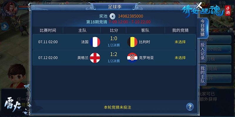 这个夏天,俄罗斯世界杯点燃了人们的热血与激情,不知道有多少少侠们熬夜看球,为自己喜欢的球队打call呢?世界杯即将进入尾声,不知最后冠军会花落谁家?与此同时,倩女三界中也在进行一场别开生面的比赛,跨服蹴鞠燃情登陆,绿茵场上一决雌雄! 【双雄逐鹿决冠军,倩女竞猜分大奖!】 世界杯半决赛刚刚结束,欧洲双雄双双杀入决赛,即将于15号开始的决赛中法国与克罗地亚间将爆发巅峰之战,角逐本次世界杯的冠军!不知道各位少侠更看好那支队伍呢?赶紧来倩女幽魂手游中投注竞猜吧,历经一个月的赛事,目前倩女手游奖池中的银两已累积接近150亿,等你来瓜分! 随着赛程的深入,主队奖励也愈加丰厚,而在游戏中选择了法国和克罗地亚作为主队的玩家,将见证这一历史时刻,获胜方还将收获超值的主队奖励! 【大赛战况白热化,绿茵场上谁与争锋!】 世界杯即将迎来最后一场酣战,同时倩女手游蹴鞠大战也即将收官。足球季活动结束后,积分历史累计前三名的玩家分别可以获得【蹴鞠·三界球主】、【蹴鞠·踢出名堂】、【蹴鞠·闪耀新星】专属称号,让你闪耀三界365天!同时每周积分排行榜前三名的玩家也将获得为时七天的蹴鞠系列称号奖励。 然而想要得到这些称号却没有那么容易,自从蹴鞠玩法上线以来,倩女手游中各路豪杰纷至沓来,热情也空前高涨!绿茵场的魅力吸引着无数的玩家,每天都有许多玩家参与到玩法当中,这也导致蹴鞠积分排行榜位次变化频繁,竞争十分激烈! 【重赏之下有勇夫,缤纷大奖等你来!】 倩女幽魂手游蹴鞠大赛已经接近尾声,还没有体验过的玩家们可要抓紧时间了!活动期间,玩家可以通过NPC【韩球】报名参加倩女幽魂手游跨服蹴鞠大赛,领略蹴鞠的魅力,在绿茵场上大展身手。比赛中玩家将被分为红蓝两队,在为时五分钟的比赛中,双方需要尽力将蹴鞠踢入对方的球门中。 本次活动奖励多多,每日首次获胜的玩家可获得首胜礼包,蹴鞠大赛的胜利者还可以获得积分奖励。玩家可以凭借积分兑换道具,不仅有刮刮乐奖券,更有全新的颠球动作,限时可得哟!还在等什么?赶紧和小伙伴们一起来倩女手游秀一秀你的脚法吧! 新一代国民手游《倩女幽魂》是《新倩女幽魂》端游的官方手游,拥有端游级唯美画风与人设,传承经典玩法!流星火雨降世,全新世界事件神秘来袭!得道高僧穿越千年,欧冶地宫暗藏千年秘辛,神兵副本现已开启,神兵系统即将来袭! 《倩女幽魂》手游官方微博:@倩女幽魂手游 《倩女幽魂》手游官方微信:网易倩女幽魂手游 《倩女幽魂》手游官方贴吧:倩女幽魂手游吧 《倩女幽魂》手游Facebook:@qnyhshouyou 《倩女幽魂》手游助手App:http://yxzs.163.com/qnm/ 《倩女幽魂》手游网易大神:倩女幽魂手游菌 |