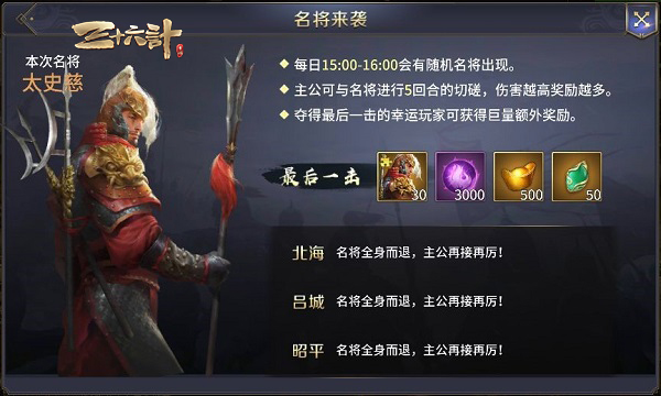 多维度战争策略手游《三十六计》在测试期间预约已过百万,定档8月1日开启全平台公测,创新国战玩法引领最耳目一新的策略头脑风暴!新型国战玩法,特殊材料副本,有趣计策宝藏,奖励丰厚的四季活动等。重塑正统大三国玩法,还三国以格局策略! 【看点一:新型国战,逐鹿中原】 除了采用大地图和以城池为节点的推进模式是一大亮点外,游戏内每天国战时间固定,使得玩家可以在减轻负担的同时尽情享受攻城略地的快感。城池分为关城、郡城和都城三种类型,玩家只有先拥有城门的城池,攻克任意城门后,才可进攻内城;内城拥有极高的城防值,拥有大量的精英城防军和城防军大将驻守。一定要在点火倒计时内攻下城池,归属己方,一鼓作气,攻下内城,称霸中原! 【看点二:特殊产业,名将来袭】 世界采集中,普通的产业有粮草、木材、生铁,而在公测版本中,玩家可以在野外发现一些特殊产业,并采集许多稀有材料,如计策碎片、升星石、建造加速等。除了特殊产业外,每天都会有一位名将在附近城池出现,参与攻打名将,能获得大量金银财宝,根据伤害量排名,伤害越高奖励越多,如果是打败名将的最后一击,那么还会获得额外的丰厚奖励。 【看点三:四季更替,各享其利】 游戏中设有四季活动, “春”“夏”“秋”“冬”每一季代表一天,每季活动都有独特的资源奖励加成,如:讨伐异族野怪掉落道具概率提升、国战获得的奖励、资源采集速度提升、科技研究速度提升等。根据每一天当季的活动主题参与相关的行为就能获取积分,累计积分就能获得相应奖励。 【看点四:计策宝藏,摸金寻龙】 世界地图会整点刷新计策宝藏,包含不同品级的宝箱,主公可以派出精锐队伍夺宝。首次入驻的队伍打败驻守NPC占领宝藏后开始计时。觊觎同一宝藏的其他队伍,可以与已进驻宝藏的队伍一决高下,胜利就取而代之,失败则原路返回。最终结算时根据占领宝藏的时长来排名,前三名会获得丰厚奖励。没有获得奖励的玩家也不用气馁,每天都有5次夺宝机会。 《三十六计》手游仍在火爆预约中,预约完成即可在游戏公测后获得星盘、资源箱等丰厚福利,让你在霸业之初快人一步;邀请好友进行预约,还能获得价值千元的白虎套装,为麾下英雄装备后将战力猛增,所向披靡!抓紧最后的机会,赶快预约吧! 《三十六计》手游预约:https://36m.youzu.com/together 关于《三十六计》手游 《三十六计》手游是游族网络战神工作室研发的多维度战争策略大作。游戏以汉末三国为主题,将这一时期的猛将、谋士、美女、统帅集结在一起,而玩家将成为这些英雄的主公,指挥他们逐鹿中原一统天下。在游戏中你可以利用计策系统,并通过前中后三军的排兵布阵与对手在微观对局中一较高下;也可以在世界大地图上调兵遣将,以天下165座城池为棋盘,体验一策奇谋吞天下的畅快! |