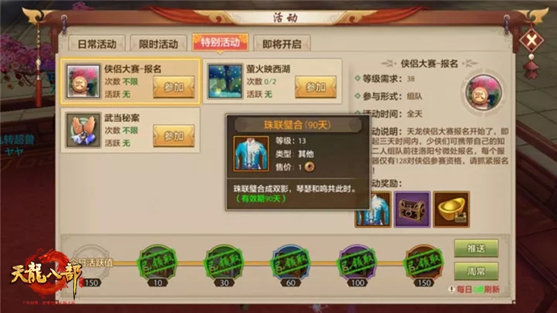 嗨,这是你的“珠联璧合”!十年经典,金庸正版授权的《天龙八部手游》正在紧锣密鼓的筹备着八月版本,而在这一全新版本中,游戏特别打造的侠侣大赛也将正式上线,全服寻找最强侠侣。届时,游戏内的侠侣玩家可以组队前来报名参赛,参与活动并获得晋级的侠侣,就有机会领取到新时装“珠联璧合”。 今夏结缘最佳方式 边秀恋爱边打架 你是否还孤身一人闯荡江湖?默默守在镜湖,还是在雨夜的苏州巷弄里等待着逢着一个如丁香花一样的女子?等爱不如主动寻爱!《天龙八部手游》即将贴心解锁今夏结缘最佳方式,边秀恋爱边打架。游戏八月版本中即将上线的侠侣大赛,为玩家们提供了一个结缘契机。如果你对身边的战友有着朦胧的好感,那就带上TA来参赛吧。如果你早已心仪某人许久,那也勇敢的将邀约说出口——和我一起报名参加侠侣大赛吧!如果你已经拥有一位佳偶,也请带上TA,在战斗中一起为爱而战,让感情在战斗中升华,最终收获最真挚的情感。 江湖道上爱意浓 最强侠侣花落谁家? 区别于传统的比武擂台赛,《天龙八部手游》即将启动的侠侣大赛,旨在让游戏内的情侣玩家增进感情,一同并肩作战秀出不一样的恩爱。因此,在赛制与规则上,侠侣大赛都有很多创新之处。如参赛资格,大赛仅限达到38级的异性两名玩家组队进行报名。异性少侠在组成2人队伍报名后,将会根据组队少侠的最高等级来划分为青铜组(38-69级)、白银组(70-79级)、黄金组(80-89级)和钻石组(90级以上)。只要报名的少侠两人的总战力,在段位排名128之内即可获得参赛资格。 之后的赛程包括了本服进行的淘汰赛,全服的复赛,以及最终的侠侣大赛总决赛即全服8强对决,最终将角逐出独一无二的最强侠侣! 新时装“珠联璧合”送给最真挚的情感 《天龙八部手游》侠侣大赛的奖励将十分丰厚,据悉将包括多套时装、坐骑,以及特殊专属的侠侣称号。其中,只要参与侠侣大赛并获得了晋级的侠侣,就有机会获得新时装“珠联璧合”,另外还能够获得打造材料宝箱,未晋级的侠侣也能够获得不同数量绑元奖励。 《天龙八部手游》八月版本精彩前瞻,侠侣大赛即将浓情开启!参与并晋级就有机会获得新时装“珠联璧合”,还有海量奖励赠予最强侠侣。这么多奖励,心动就不如行动,赶快找个对象准备参加比赛吧! 扫描或长按识别二维码,立即下载《天龙八部手游》: 关注《天龙八部手游》微博,实时了解游戏最新动态 微博二维码 关注《天龙八部手游》公众号,获取游戏更多信息 公众号二维码 加入《天龙八部手游》兴趣部落,兄弟在这里等你回来 兴趣部落二维码 点击链接tlbb.qq.com进入《天龙八部手游》游戏官网 关于《天龙八部手游》 金庸正版授权,《天龙八部》端游原班人马倾心打造,完美传承端游核心特色与经典玩法。游戏以Unity5引擎打造真实3D视觉盛宴,再现聚贤庄、珍珑棋局、琅嬛福地等知名场景,更有乔峰段誉王语嫣等英雄角色指点传世神功,四大经典门派,远攻近战、刺客治疗各具特色,珍兽神器、装备打造、自由交易玩法丰富,还有行酒令、运镖、凤凰古城等快意帮派玩法,营造出一个荡气回肠、快意恩仇的热血武侠世界,完美呈现金庸笔下最宏大的天龙江湖! 了解更多相关信息,请前往http://game.yzz.cn/html/info-5764.html |