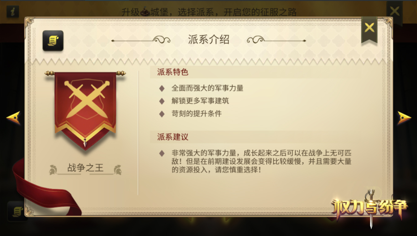个性选择,成就帝王之道!网易首款全球同服策略手游《权力与纷争》将在8月2日11:00开启第二次安卓计费删档测试,年轻的领主们将再次相聚法维拉大陆,开启新的帝王征程!与此同时,全新的派系系统也将同步上线,加入派系即可享受特色加成,铸就属于自己风格的强大帝国,敬请期待! 打造专属帝国,全系派系系统即将登场 帝国崛起,为王座而战!8月2日11:00,网易首款全球同服策略手游《权力与纷争》将开启第二次安卓计费删档测试,游戏预下载也将在8月1日15:00开放,届时,玩家们便可再次踏上充满血与火的法维拉大陆,开启自己的争霸之旅! 在本次测试中,《权力与纷争》除了对现有内容进行了优化之外,还新增了全新的派系系统,将为玩家们带来更多的乐趣与可玩性。 对于帝国的建设与经营来说,每个领主都有着不同的理解,即将登场的派系系统正是为不同风格的玩家服务,希望所有玩家都能发挥自己的特长,打造出自己理想中的帝国! 派系系统共三大类,分别为经济派、工业派与军事派。在游戏开始之际,作为一名新任领主的玩家并没有派系,在游戏进行到一定阶段时,玩家可以自行选择派系。 热爱经营的玩家可以选择加入“金钱帝国”,也就是经济派。加入之后可建造更多农田、果园、酿酒坊、屠宰场、市场等建筑,且会获得农业原料生产加速、市场销售加速、远程士兵加强等加成。在这个派系下,玩家拥有几乎花不完的银克朗,以及强大的攻城和远程单位军事力,可谓是名副其实的“金钱帝国”! 喜欢建造的玩家可以加入“工业巨擘”,也就是工业派。加入之后可建造更多伐木屋、采石场、木材加工厂、金属加工厂等建筑,并会获得原料采集加速、建材加工加速、近战士兵加强等加成。工业派将充分发挥玩家擅长建筑资源生产的特长,引导玩家成为一名“工业巨擘”。在这个派系下,所有建筑都将变得非常高级,城市的防御和近战士兵的能力也十分强大! 而热衷于战争的玩家则可以选择加入“战争之王”,也就是军事派。加入之后可建造更多长矛作坊、盔甲作坊、军营、军事学院等建筑,并获得武器制作加速、行军速度加速、远全团攻击加强等加成。该派系需要投入大量资源,虽牺牲了一定城市经济与工业的生产效率,但却能依靠强大而全面的军事力量,来轻松征服所有其他城市,乃至正整个帝国,玩家也将成为真正的“战争之王”! 提升派系等级,成就一方霸业 一代帝王的崛起,亦需要声望的支撑。在《权力与纷争》中,玩家可以通过派系声望的增加或完成指定任务的方式,来提升派系等级。派系等级越高,可以解锁的派系建筑和获得的加成越多。而派系声望则可以通过击杀野怪、参与作战等方式来获得。 此外,玩家选择派系之后,如果想要更换派系,后续仍然有机会可以重新选择。 不同派系,多种选择!《权力与纷争》第二次计费删当测试即将到来,8月2日11:00准时开启,全新派系系统同步上线,经济、工业、军事三大派系任你选择,快来加入争霸行列中吧!关于游戏的更多玩法、更多精彩内容,请关注相关后续报道。 了解更多相关信息,请前往http://sy.yzz.cn/qlyfz/ |