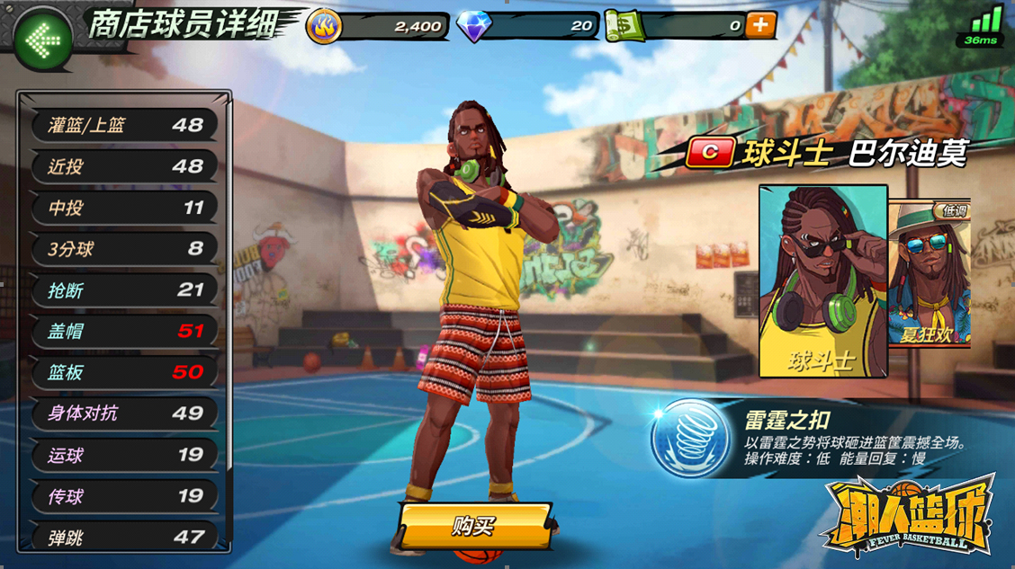 闪电出击,雷霆暴扣!全新中锋球员巴尔迪莫登场!从小热爱篮球和雷鬼音乐的他,独立,冷酷,身体素质劲爆,在球场上开辟出独特的打法和技巧!一起来感受一下巴尔迪莫有多强大吧!! 身世坎坷,注定不凡! 父母蒙受诈骗去世,谁能想到孤身一人的他也能用篮球打出一条血路呢?失去父母以后,陪伴巴尔迪莫的只有存入雷鬼音乐的MP3和篮球。周围没有任何亲戚的他,凭借着父亲教授的篮球技术以及优越的身体条件,在贫民区打篮球赌博为生!他从小就在球场成长,练就一身高超的篮球技术! 雷霆暴扣,称霸内线! 巴尔迪莫从小独自一人在球场成长,练就出凶狠果决的身手,被人们称之为“死神”!他的爆发技能雷霆之扣,能以雷霆之势将球砸进篮筐,震撼全场!他在禁区范围内扣篮成功率高,配合强大内线能力,单打、抢板、勾射样样精通,能够在分毫之间快速得分!巴尔迪莫只要拿到球,你就能感受到他的杀气! 夏日特色,清凉舒爽! 场上被称为“死神”,场下却是雷鬼音乐狂热粉丝。原皮肤休闲混搭的穿衣风格,加上脏辫和耳机搭配,彰显出这位“死神”的个性风格!而他的皮肤夏狂欢、鬼船长穿着非常清凉,海域、海滨特色明显,仿佛就是在参加海边派对! 实力强劲、称霸禁区!冷酷、决绝的巴尔迪莫已经杀到球场,你,被他的杀气震慑到了吗?快来《潮人篮球》的球场上一决高下! 关于《潮人篮球》 纯竞技,真街球!网易首款篮球竞技手游——《潮人篮球》,主打3V3实时对抗,拥有排位赛、激情solo等多种玩法!无外挂纯操作,打造绿色公平竞技环境;个性美漫风,百变潮人球员任你选;一键爆发技,演绎高光时刻;首创“4+1”按键,攻防套路无限可能!赛事自定义,乐享竞技激情! 《潮人篮球》手游官方网站:http://chao.163.com 《潮人篮球》手游官方微博:@潮人篮球手游 《潮人篮球》手游官方微信: 潮人篮球手游(chaolan163) 《潮人篮球》手游官方Q群: 608465078(一群已满)、649663090(二群)、688030101(三群已满)、703073046(四群) 了解更多相关信息,请前往http://game.yzz.cn/html/info-6509.html |