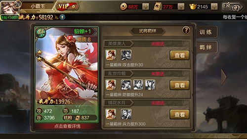 仙豆手游《三国单机版》是新上线的一款三国类SLG手机网游。玩家可以在乱世三国中招募武将、攻城略池、建设封地、割据一方。更有官渡之战、汉中之战、赤壁之战等经典三国战役;同甘共苦、肝胆相照的将士情谊;分分合合、惨淡经营的凄美爱情。在这金戈铁马、群雄并起的年代,在仙豆手游三国单机版开创属于自己的王者之路吧。 既然是三国题材,玩的就是对战!国战作为SLG游戏的核心玩法,仙豆手游《三国单机版》中同样以城战系统为核心。当然,在开启城战之前,需要进行城池收复,这也是游戏的主线任务。《三国单机版》中共有60座城池,战胜该城池的所有守城将领即完成收复。期间可能会遇上一些特殊任务,比如先前往解救受困的美女等。 而在城战系统中,战斗界面相当炫酷。你可以先以一句“王侯将相宁有种乎”拉开大战的序幕。毕竟一鼓作气,再而衰,三而竭,在短兵相接的第一时间,士气最重要! 然后以一招“热血冲击”瞬间击溃防线。在万马奔腾之下,敌方溃不成军。 这招“飞凰冲击”同样亮眼。火凤凰飞过之地,只留下一地残迹。 男儿志在四方,要想功成名就,就离不开攻城略池、刀光剑影的奋斗历程。当然,要想在《三国单机版》中扬名立万,强大的武将便是你的核心战斗力。我们可以收集到超过50个三国名将,并通过升级、升技能、穿戴宝物等提高武将的战斗能力。而且,《三国单机版》共有枪兵、弓兵、骑兵、谋士和战车五大兵种,他们之间相互克制。 战斗开始后,根据兵种克制安排兵力,才能做到战斗收益最大化。因为战局往往瞬息万变,一招不慎便可能导致满盘皆输。熟悉兵种属性、合理兵力分配、掌握布阵技巧,才能常立于不败之地。 值得注意的是,尽可能多的培养武将也很重要。你只喜欢魏蜀吴某一国的武将,那是万万不可的。比如在出征玩法“襄樊之战”中,蜀国武将不允许进场出战。如果缺乏非蜀国的武将,等待着的可能就是一场失利了。 说起三国的战役,想必大家都会如数家珍——火烧赤壁、官渡之战……在《三国单机版》,玩家如今得以身临其境,同样体验到经典战役带来的刺激与趣味。经典战役系统目前共有4场战役并限时开放——官渡之战、汉中之战、赤壁之战、虎牢关之战,每场战役均只能出战指定国家的武将,挑战成功后将获得丰厚的资源奖励。 虽然在三国的历史中,很多情侣因为身处乱世而不能善始善终,结局凄美。《三国单机版》正为这些相互存在某种联系的武将产生了羁绊关系。这种关系并非无的放矢,而是根据三国历史中真实的人物关系进行的设定,命名也颇有考究。比如我们熟悉的吕布和貂蝉“英雄美人”、蔡文姬与曹操“恩怨难断”、曹植与曹丕“七步成诗”等等,都建立在我们的习惯认知上。 全民攻城、占地为王,群雄逐鹿、谁主沉浮。总的来说,仙豆手游《三国单机版》在完美还原了三国历史的基础上,主要以武将养成和城战系统为核心玩法,辅以经典战役、武将羁绊等趣味要素,再现了SLG类游戏的经典玩法。更多精彩内容还有待各位少侠下载注册,一探究竟!欢迎关注官微公众号仙豆手游(xiandousy),定期更新游戏动向,还有《三国单机版》超值大礼包领取! 了解更多相关信息,请前往http://game.yzz.cn/html/info-7086.html |