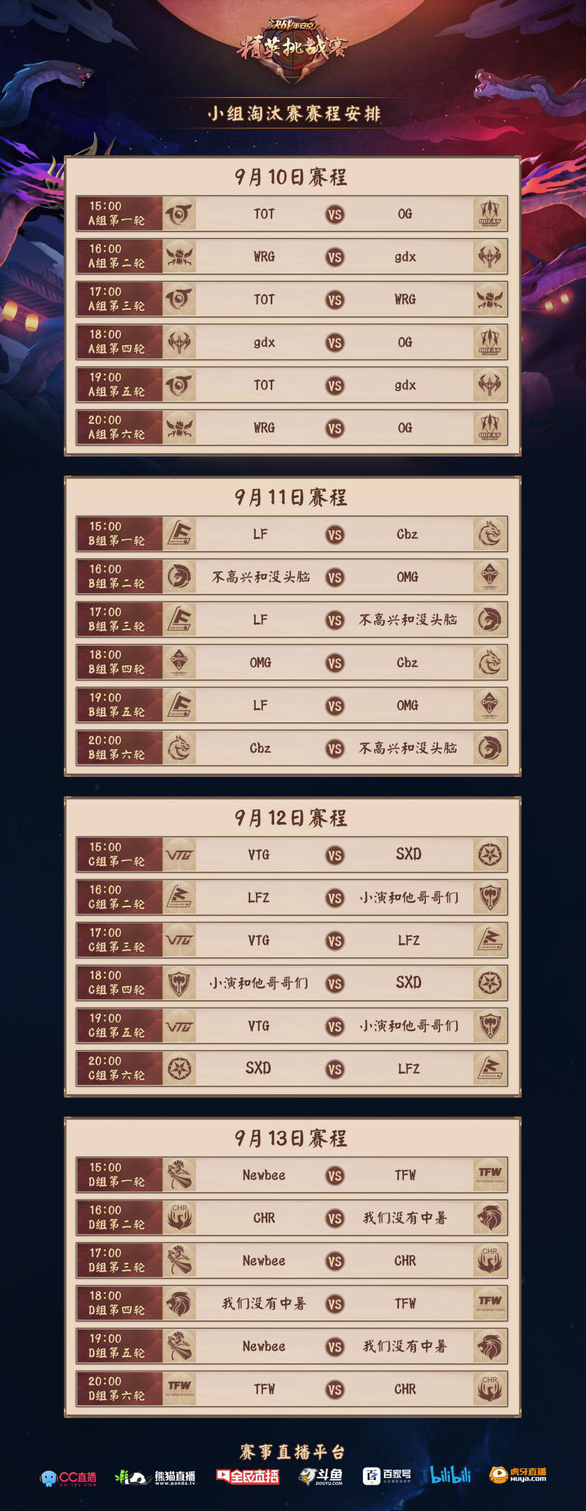 战意无限,烽火四起,《决战!平安京》精英挑战赛小组赛已正式开幕!经过海选赛的一轮激战,16支战队已突出重围,成功晋级!他们将在9月10日至9月13日进行初轮小组赛!七大直播平台将全程直播,激烈赛事一触即发! 《决战!平安京》官网:http://moba.163.com/ 《决战!平安京》开学季正式开启:https://moba.163.com/2018/xypf/ 《决战!平安京》全新玩法逢魔之战:https://moba.163.com/2018/fm/ 《决战!平安京》全新式神面灵气:https://moba.163.com/xss/mianlingqi/ 群英乱斗,精彩无限 《决战!平安京》精英挑战赛一经启动即得到广大玩家的热烈响应,大批精英玩家呼朋唤友,积极参加平安京的全新赛事。根据比赛规定,晋级海选赛只需自行冲分即可,给了各队伍更加充分的准备空间和更加良好的比赛体验。根据队伍总积分的排名,64支精英战队脱颖而出,成功晋级海选赛。 海选赛中,经过64支战队层层角逐的激烈厮杀,最终16支强队成功突围,晋级下一轮的小组赛。恭喜他们以出色的表现晋级,也期待16强战队呈现更精彩的比赛! 平台直播,全程高能 本次赛事将由七大直播平台全程直播,除了可以欣赏到选手们的精彩表现,更有专业解说将激烈的比赛娓娓道来,让观众全方位地感受到比赛的紧张刺激。 小组赛于9月10日至9月13日进行,16支战队分为4组,采用BO3组内单循环的赛制。根据总积分排名,每组排名前2名将晋级总决赛。 《决战!平安京》精英挑战赛直播地址如下: CC直播::http://cc.163.com/306134655 熊猫直播:https://www.panda.tv/1820849 全民:https://www.quanmin.tv/25711935 斗鱼:http://www.douyu.com/4196244 百家号: https://baijiahao.baidu.com/u?app_id=1604569166171466&fr=bjharticle Bilibili:https://live.bilibili.com/7623885 虎牙:https://www.huya.com/16423819 最终的总决赛将于9月15日至9月16日进行,敬请关注!精彩赛事接连不断,丰厚奖金静候强者。《决战!平安京》精英挑战赛火热进行中,电竞新势力等你来pick!更多赛事安排,请关注《决战!平安京》官方网站、官方微博、官方微信! 【关于《决战!平安京》】 《决战!平安京》是一款全球无符文对称MOBA手游,秉承 5V5公平竞技理念,告别符文系统,实现了地图镜像对称、战斗数值均衡,真正绿色公平对战;继承网易重磅IP《阴阳师》,和风画面细腻唯美、人气式神接连登场、顶级声优鼎力加持;独特有趣的技能设定和自由搭配的“阴阳术”,带来更多的技能组合和战术变化,为玩家带来全面革新的MOBA手游体验! 了解更多相关信息,请前往http://sy.yzz.cn/jzpaj/ |