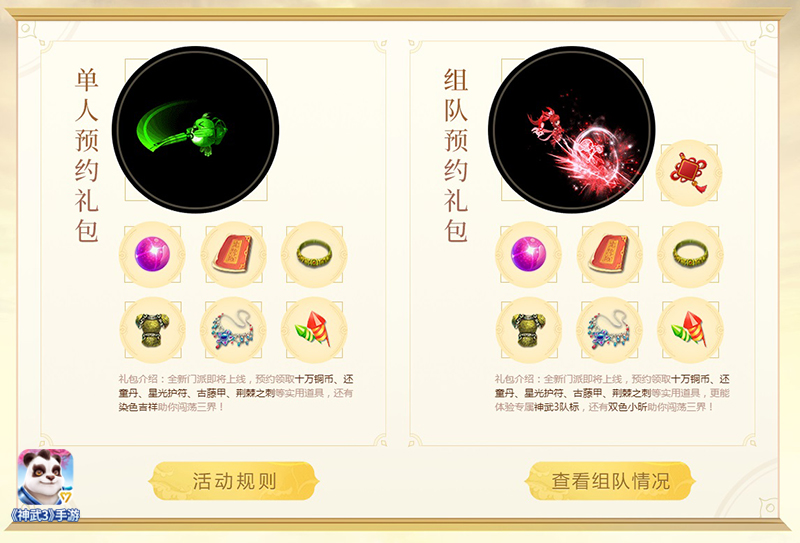快乐开学季,《神武3》送好礼!为迎接《神武3》手游2018下半年全新内容暨第十大全新门派盛装上线,《神武3》手游新门派预约活动火热开启——参与新门派预约即可领取还童丹、强力宠装、星光等实用游戏道具,组队预约更有超级萌宠“双色小昕”等你来拿! 双色小昕福利助阵 新门派预约活动开启 《神武3》手游自面世以来,一直深受广大少侠喜爱,已有的九大职业各有千秋,而这全新的第十大职业又会给少侠们带来怎样的惊喜,让我们拭目以待。同时随着新门派上线时间的临近,《神武3》手游全新门派预约专题也重磅上线。新门派预约分为“单人预约”、“组队预约”两种形式——即日起,登录《神武3》手游新门派预约专题,点击“立即预约”按钮,输入手机号、验证码即可完成单人预约,新门派上线后,成功参与单人预约的玩家便可凭借手机号领取单人预约礼包,内含还童丹、铜币、宠物经验心得、星光护符、强力宠物装备等实用道具。 参与单人预约时,少侠们还可以生成邀请码,并将邀请码或者页面分享给好友,邀请好友一起组队预约、赢取内含还童丹、铜币、宠物经验心得、星光护符、强力宠物装备及专属神武3队标体验券、双色小昕等丰厚奖励的组队预约礼包。需要注意的是,每个手机号只能发起或响应一次预约、每个手机号仅能获取一次预约礼包奖励、每个角色仅能获得一次预约礼包奖励,并且只有当组队够5人时才能领取组队预约礼包,不足5人则只能领取单人预约礼包。 第十大门派火热来袭,战斗革新一触即发;全新门派预约活动开启,双色小昕倾情助阵,海量好礼千万不要错过!登录《神武3》手游新门派预约页面https://sw3sy.duoyi.com/act/2018/suncity/,与神武少侠们一起预约新门派!《神武3》手游2018下半年全新内容即将上线,更多内容、更多福利,敬请期待! 关于《神武3》手游: 青春相伴,快乐神武3!神武3开学季快乐来袭,海量福利等你来拿!黄子韬专属创作,神武3主题曲《默默》正式上线,带你感受有温度的神武世界!《神武3》手游玩法丰富,不仅继承了神武系列游戏的经典回合制玩法,更有新颖独特的宠物系统、小伙伴系统,一定让你爱不释手!《神武3》手游还是一个强大的娱乐互动社区,轻松的语音系统让你边玩边聊,游戏交友两不误。青春相伴,快乐神武3,前所未有的游戏体验,尽在《神武3》手游。 《神武3》手游官网:http://sw3sy.duoyi.com/ 黄子韬专属创作神武3主题曲《默默》:https://sw3sy.duoyi.com/act/2017/tao/m/ 《神武3》迷你动画《神武英雄传》:https://sw3.duoyi.com/topic/hero/ 《神武3》手游新门派预约页面:https://sw3sy.duoyi.com/act/2018/suncity/ |