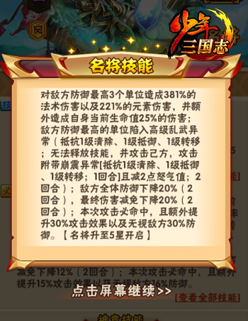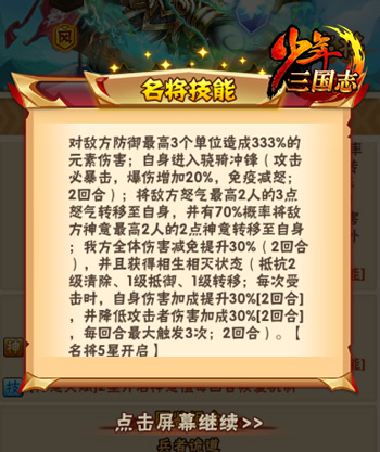 现象级卡牌手游《少年三国志》全新暗金名将“鬼谷子”今日正式登场。作为战国时期兵法的集大成者,他拥有强力的控制与怒气恢复技能,可在对决中掌控敌军,并为我方武将恢复大量怒气,从而帮助玩家在对决中更具优势。 暗金名将“鬼谷子”今日登场 登场恢复怒气 大招持续释放 暗金名将“鬼谷子”登场技能预览 战国时期的鬼谷子,姓王名诩,道号玄微子,是著名的谋略家、道家代表人物、兵法集大成者、纵横家的鼻祖。他精通百家学问,因隐居鬼谷,故自称鬼谷先生。 在游戏中,鬼谷子与其他暗金名将一样,拥有登场大招、怒气必杀、神意特技“三大招”特色玩法。其中,他的强力登场技能“纵横”发动时,除了可对敌方造成大量伤害、异常状态外,还可恢复我方武将的怒气值,保证了我方大招的持续释放。 鬼谷子的登场大招还可为自身提供一个可以抵御一切伤害的生命护盾,该护盾存在期间,我方将大概率获得“减益抵抗”与伤害加成,并可额外抵御武将最大生命上限一定百分比的伤害,可谓攻守兼备。 大招多重控制 强力削弱敌军 暗金名将“鬼谷子”怒气必杀技能预览 除了登场大招,鬼谷子还拥有强力的怒气必杀,可对敌方若干武将造成高额的元素伤害与法术伤害,并可对敌方防御最高的武将施加“乱武”状态。同时,该技能还可降低敌方全体武将的防御与最终伤害减免,多维度的控制打击,将极大削弱敌方实力。 怒气转移 彼竭我盈 “鬼谷子”神意大招预览 此外,鬼谷子还可在对战时释放强力神意大招,该技能可“偷取”敌方主力武将的怒气与神意值,将其转移到我方武将身上。同时,该神意大招还可提升我方全体武将的伤害减免与抵抗能力,彼竭我盈,我方将在对决中将更加占据主动。 名将多重养成 提升全体属性 暗金名将图鉴“兵者诡道” 鬼谷子还可通过名将并肩、图鉴养成等多种玩法,提升全体阵容的属性加成。当鬼谷子搭配金色名将一起上阵时,并肩名将可为其增加攻击、生命等属性加成,并提高属性继承比例。 同时,鬼谷子还可进行图鉴养成。玩家收集到孙膑与鬼谷子后,可点亮图鉴“兵者诡道”,可大幅提升全体武将的伤害加成。更多精彩内容,请玩家登录游戏后亲自体验! 【联系我们】 《少年三国志》官方微信:sg_youzu 《少年三国志》官方微博:@少年三国志 《少年三国志》官方网站:sg.youzu.com 了解更多相关信息,请前往http://game.yzz.cn/html/info-5159.html |