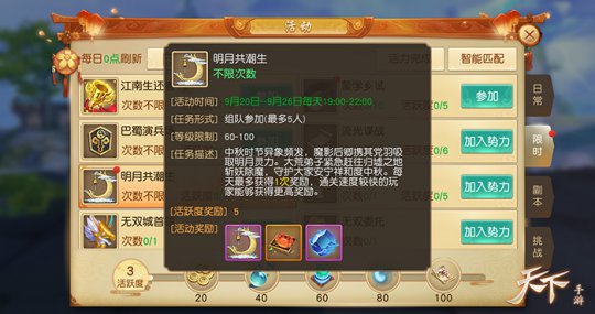 “蓝云笼晓,玉树悬秋”,来《天下》手游遇见金秋季全新时装“金桂凝秋”!乘坐全新坐骑“圆月良宵”还可把天上明月与月宫仙兔都留在身边哦。吃腻了五仁蛋黄月饼?快来中秋特别活动“合月饼”换个更好吃的!悄悄把大闸蟹藏起来的人更不能放过,一起决战中秋副本“明月共潮生”保护吃货的尊严,还有珍稀坐骑“广寒玉舟”等你来拿!这个中秋,就等你来《天下》手游过个团圆节啦! 【桂子月中落,天香云外飘!金秋季金桂元素全新时装浓情登场!】 浓烈而温柔的金色总是秋季绕不开的钦定色调,这一款《天下》手游中秋全新时装“金桂凝秋”一定是你不愿错过的秋季经典!其完美糅合中国古典韵味与和服精髓,主色调以金色渲染,尽显温柔典雅。女装上半身的无袖小立领旗袍优雅怡人,胸前的金桂刺绣更是带来了一抹别致的华丽。腰前如蝴蝶般美丽的日式文库结,衬得身形娇小可爱。下身的裙摆则采用多层次拼接而成,旋转间如花苞绽放,动静之中尽显女子柔情。 男装以纯白为主的侠客装扮则潇洒干练,明黄色的围巾夺目耀眼,尽显你天之骄子的本色。左右臂不对称的袍袖设计,走起路来风流倜傥,别有一番江湖豪侠之气。下摆处纹绣的金桂图案,与女装遥相呼应,更多增一分贵气质感。这是谁家的小少爷出来体验生活?小心怪阿姨哦! 【圆月更欲良宵近,同把玉兔捣药来!中秋节全新限定坐骑惊艳上线!】 听说月宫的兔子下凡陪大家过中秋啦?没错!《天下》手游金色中秋全新限定坐骑“圆月良宵”全情上线!精致的木制圆形拱门特意保留了木材原有的树枝形态,上镶一方圆月,下设一方圆榻,或仰或坐,或躺或卧,皆得风流之意!可爱的玉兔娘也特地为少侠你溜下凡间,只为陪伴在你身侧,一起对月品茶。若此时再带上一位挚友同行,就更不枉这中秋盛景啦! 【巴啦啦能量,月饼超进化!出来吧,中秋节限定豪华珍兽&聊天装饰!】 中秋节吃大闸蟹,滋阴补气最好不过啦,再配上一壶桂花酒,恩,是秋天的味道没错!什么,在哪里买?快来《天下》手游中秋节欢乐活动“合月饼”吧!只要使用月饼进化器就可合成不同阶级的月饼,阶级越高可获得的奖励就越丰厚,大闸蟹都是小case,后续更有雷钻、中秋节限定头像框&聊天框、“广寒玉舟”坐骑等珍稀奖励!荣登排行榜的玩家,还有神秘的荣誉奖励可以拿,万一错过,可就都成“别人家”的啦! 【决战中秋副本!抢走大闸蟹的人,一定是敌人没错!】 不好啦,有人抢走了中秋节特供的大闸蟹,藏到《天下》手游中秋节副本“明月共潮生”里去啦!快把他们找出来,狠狠地敲打一顿吧。以最快速度取回大闸蟹的少侠还可获得雷钻、“广寒玉舟”坐骑等珍稀奖励。今晚的中秋宴,就看少侠你大展身手啦! 更多中秋节超级福利、新服庆典、全新时装坐骑高清大图等好玩又有趣的信息,只需少侠的继续关注!这个中秋,祝您阖家团圆,万事如意! 《天下》手游全体工作人员,参上! 官方网站:https://tx.163.com/ 官方微博:https://weibo.com/wytxsy 官方论坛:http://tx.16163.com/ 官方微信公众号:天下手游 官方网易大神号:@天下手游 |