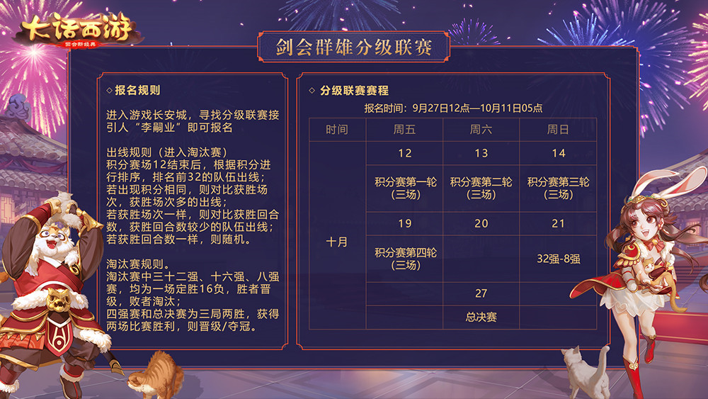 剑会群雄,谁与争锋!第二届《大话西游》手游“剑会群雄”分级联赛即将拉开帷幕,联赛赛程也在今日正式公开!全新升级的赛事规则,让你与各路英雄豪杰一决高下,更有专属头像框、称号等尊贵奖励等你来赢,同时,此次还将为逍遥三界组别玩家新增“冠军雕像”特别奖励,彰显冠军荣耀! 分级赛赛程首曝 第二届“剑会群雄”即将开战 大话江湖,刀光剑影,首届分级联赛让我们认识了众多实力超群的大话玩家,也见证了许多经典对决!随着大话江湖的风起云涌,更多新的勇士早已跃跃欲试,与此同时,《大话西游》手游第二届“剑会群雄”分级联赛赛程正式公开,邀各位少侠共赴一场崭新的PK盛宴! 在本次分级联赛中,免费服相比首届分级联赛将增加一个小组,共分四个小组,分别为逍遥三界、纵横武林、闯荡江湖和初入凡尘,其中初“初入凡尘”组为新增小组,时间服则分为三个小组,逍遥三界、纵横武林和闯荡江湖,新增了“闯荡江湖”小组。 赛事报名时间为:9月27日12点—10月11日05点,等级满足各个组别等级需求的玩家,均可以5人组队的形式,前往长安城内分级联赛接引人“李嗣业”处,报名参赛。 本次分级联赛共分为积分赛、淘汰赛、总决赛,共计三轮: 积分赛:10月12日、10月13日、10月14日及10月19日的20时开始 32强——8强淘汰赛:10月21日20时开始 四强赛及总决赛: 【初入凡尘】组和【闯荡江湖】组:10月27日14时开始; 【纵横武林】组:10月27日16时开始; 【逍遥三界】组:10月27日19时开始。 在12场积分赛结束后,排名前32的队伍将晋级出线,进入淘汰赛。 淘汰赛包括1/32强赛、1/16强赛、1/8强赛,均为一场定胜负,胜者晋级。 四强赛与总决赛则为三局两胜制,获得两次比赛胜利的队伍将晋级/夺冠! 大话江湖,谁主沉浮?《大话西游》手游第二届“剑会群雄”分级联赛即将火爆来袭,赛事报名也将在9月27日12:00正式启动,全新升级的分级赛制,更加公平的线上对战。更全活动预告,海量游戏信息,请关注《大话西游》手游官网、官方论坛。 与此同时,下载网易大神APP,关注@大话西游手游,每天参与抢评活动,前50名必得价值50元超值大礼包! 网易大神官网: http://ds.163.com/ 了解更多相关信息,请前往http://xy2.yzz.cn/sy/ |