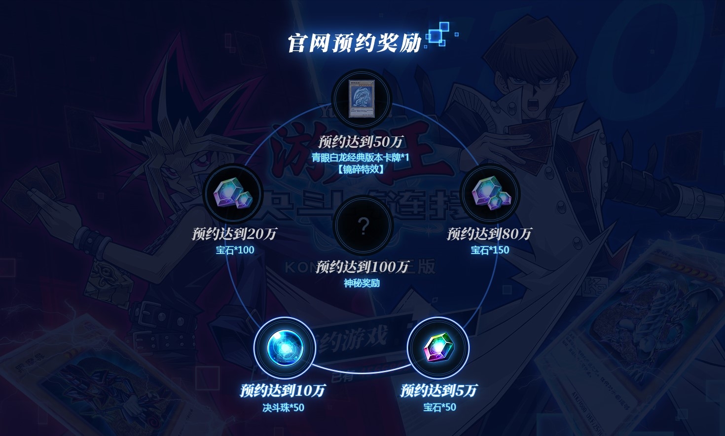 9月20日东京电玩展现场,KONAMI正式公布《游戏王:决斗链接》中国版将由网易代理发行,并于同日开启预约。至今加入国服预约行列的决斗者已超过10万人!官方也为各位决斗者准备了丰富的预约奖励,下面就一起来看一下吧~ 加入决斗链接的世界 召唤青眼白龙! 在本次预约活动中,官方一共为玩家们准备了6档预约奖励,只要达到一定的预约人数,就会开放对应的预约奖励,所有预约奖励将会在公测时于全服发放。 预约奖励中的宝石可以用于抽取卡包,获得进行决斗所需要的卡牌,而决斗珠可以用于重置游戏中的路人决斗者,进而为玩家提供游戏内的各种资源。 当预约人数达到50万人时,玩家更是可以获得人气角色海马濑人的王牌怪兽——青眼白龙经典版本卡牌【镜碎特效】一张!拥有镜碎特效的卡牌不仅卡面更加酷炫华丽,如果在决斗中成功召唤的话,决斗结束后还会获得更高的结算分数! 此外,预约人数突破100万人后还将会送出一份国服专属的神秘奖励!具体的奖励内容会在后续进行公布,敬请关注后续的官方消息~ 手游版游戏王 随时随地开启决斗 《游戏王:决斗链接》是由KONAMI研发的官方正版手游,国际版在全球市场也取得了傲人的成绩,名列多国App Store免费榜(游戏类别)榜首。 在《游戏王:决斗链接》世界里,玩家将化身暗游戏或海马濑人等人气角色;利用多达上千张卡牌,随心构建独一无二的卡组;召唤黑魔导、青眼白龙等强力怪兽;更有震撼的3D召唤动画,完美重现记忆中的召唤场景!通过挑战关卡副本、完成任务,还能够解锁众多人气决斗者。 手游版采用了简化的“快速决斗规则”,在玩法上大大降低了新手的学习门槛,在核心乐趣上则最大程度的还原了真正的决斗体验。无论你是否熟悉游戏王的规则,都能够随时随地轻松开启决斗! 《游戏王:决斗链接》国服预约正在进行中,想要进一步了解游戏相关资讯和测试信息的玩家,可以前往游戏官网:https://ygo.163.com/加入预约! 游戏官网:https://ygo.163.com/ 官方微博:游戏王决斗链接 官方微信公众号:游戏王决斗链接 扫一扫关注官方微博 扫一扫关注官方微信公众号 ?1996 KAZUKI TAKAHASHI ?2017 NAS?TV TOKYO ?Konami Digital Entertainment 了解更多相关信息,请前往http://game.yzz.cn/html/info-7502.html |