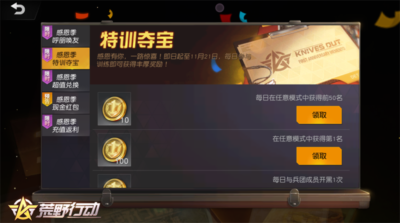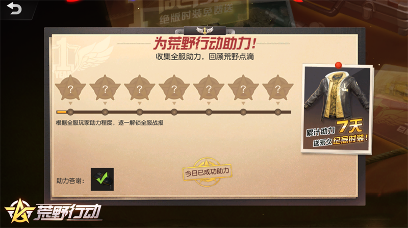 逐梦同行,感恩有你!欢庆一周年,大奖享不停!《荒野行动》周年狂欢现已开启,八大游戏福利、5000元现金红包、周年纪念时装等豪礼空降荒野大陆,多重活动同时开启,与各位玩家共享周年庆狂欢! 【周年感恩季 八大福利空投雨降临】 《荒野行动》自上线以来,便受到亿万玩家的喜爱,为感谢广大玩家一年以来的陪伴与厚爱,即日起,八大福利空降荒野大陆,多种活动邀你共度荒野周年庆! 活动一:每日抽奖寻求荒野锦鲤,现金红包、纪念座驾在线领 在11月8日至11月14日期间,各位玩家每晚在线即可参与抽奖,人人都有机会化身荒野锦鲤,将5000元现金奖励、纪念载具抱回家!活动期间每晚22:00,将抽出5名荒野幸运锦鲤,送出一等奖·5000元现金大奖!而在 21:00时会抽出10名幸运儿,送出周年庆二等奖·座驾!在20:00时,则会抽取5000名荒野精英,送出三等奖·军需。5000元巨额现金红包雨空降,拉风纪念座驾助你驰骋荒野大陆,军需开启福利享不停,就等你每日在线喜提大奖! 活动二:现金红包雨空降荒野大陆,参与战斗抢不停 在11月2日~11月3日以及11月8日~11月9日的每晚19:00-21:00,为了回馈各位荒野精英一路以来对《荒野行动》的支持,届时将有大量现金红包雨空降荒野大陆。各位玩家参与战斗即可抢现金红包,红包提现或购买点券随你喜欢,现金红包雨与你不见不散,共庆《荒野行动》周年狂欢! 活动三:每日登陆解锁荒野历程,周年庆纪念外套免费相送 一年以来,各位荒野精英的足迹踏遍了荒野大陆,你们不仅见证了《荒野行动》的成长,也与战友们一起共度了美好的荒野时光,为了感谢玩家们对《荒野行动》的喜爱以及支持,即日起至11月21日期间,玩家每日登陆并为《荒野行动》点击助力,全服将共同积累助力值,分享乐趣共享好礼!此外各位荒野精英还可解锁荒野历程,获取永久周年庆纪念外套,全服共享荒野点滴,共创荒野未来! 活动四:呼朋唤友共同作战,现金红包送送送 即日起至11月21日期间,邀请老战友或者新战友一同作战,双方都可获得现金红包奖励,每日最多可领取10个哦!同时,邀请好友达到指定人次后,更有周年庆宝箱、周年庆纪念T恤、易容卡等豪礼免费相送!心动不如行动,快叫上你的战友一起去《荒野行动》开黑,战个痛快吧! 活动五:特训夺宝一路惊喜,大量周年纪念币等你来拿 即日起至11月21日,特训夺宝火热进行!每日参与特训夺宝,完成活动任务,即可获得大量周年纪念币!周年纪念币可用于兑换各种周年纪念奖励,各位玩家千万不要错过哦! 活动六:超值兑换,周年纪念时装等你抱回家 即日起至11月21日,各位玩家参与周年庆活动获取的周年纪念币可用于兑换周年庆宝箱、周年庆纪念时装-峥嵘纪元等多种奖励!周年时装免费相送,只为给予玩家最衷心的感谢,相信有了峥嵘纪元的加持,各位荒野精英在战斗之时将更加所向披靡! 活动七:限时周年庆军需送大奖,神秘折扣每日抽取 在10月31日至11月21日,周年庆军需将限时上线,玩家每日均可抽取神秘折扣。周年限定军需将可开出周年纪念载具皮肤-初心ONE、周年庆炫酷枪械皮肤-M4A1:全机待命 先锋版、周年庆翼装、周年庆纪念时装-英雄纪元等等周年大奖!多重壕礼军需空降周年庆,助你成为最闪耀的荒野之光! 活动八:充值返利,感恩回馈各位玩家支持 即日起至11月14日,各位玩家充值达到指定金额,将可赢取周年庆军需、周年庆降落伞英雄纪元以及特训勋章等多重超值奖励! 《荒野行动》周年狂欢,八大福利、5000元现金红包、周年纪念时装等空降荒野大陆,相信各位玩家定会在周年庆中收获满满!快前往官方网站下载最新版游戏客户端,叫上你的战友们一起来《荒野行动》享受多样的游戏体验吧! 上网易大神,看荒野独家爆料!网易大神是网易游戏旗下的精英游戏社区。这里汇聚了广大精英玩家、游戏圈红人、行业大咖,集合了官方资讯和福利趣闻,旨在为玩家打造一个丰富的游戏兴趣社交圈。下载网易大神,关注《荒野行动》官方账号@荒野行动, 第一时间获取维护公告、游戏爆料,还有海量福利等你来领! 网易大神下载地址:ds.163.com 荒野行动官方大神号:@荒野行动 官方网站:hy.163.com 官方微信:网易荒野行动 官方微博:@荒野行动官方微博 了解更多相关信息,请前往http://sy.yzz.cn/hyxd/ |