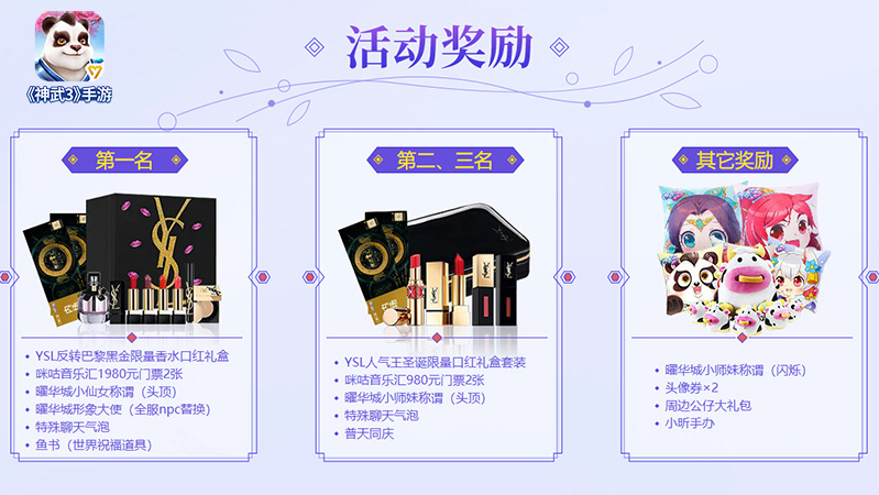华城之下,你最“曜”眼!《神武3》手游“曜华城小仙女”选拔赛火热进行中,十位人气选手脱颖而出成功晋级决赛,谁将力压群芳夺得“曜华城小仙女”桂冠呢?让我们拭目以待! 视觉盛宴重磅来袭 “曜”眼小仙女入围决赛 向阳而生,你就是最“曜”眼的小仙女!11月18日,《神武3》手游曜华城小仙女复赛结果新鲜出炉,经过激烈角逐,十位人气选手从一百六十位参赛选手中脱颖而出,成功入围决赛名单,无论得票高低,都是经过了无数神武少侠的慧眼检验才脱颖而出,她们或是清新靓丽,或是阳光自信,每位选手都是“曜华城小仙女”的有力竞争者。 寻找独一无二的你 曜华城小仙女决赛票选燃爆开启 目前,《神武3》手游曜华城小仙女选拔赛进入决赛准备阶段,参赛选手可上传自己的多张照片和一段一分钟的小视频进行竞选,还可以通过游戏宣传单、官网分享等方式为自己拉票。投票分为游戏内投票+战盟投票的形式,决出最终名次,冠军选手将获得“曜华城小仙女”专属称谓、咪咕音乐汇门票、YSL反转巴黎黑金限量香水口红礼盒奖励,亚、季军选手将获得“曜华城小师妹”专属称谓、咪咕音乐汇门票、YSL人气王圣诞限量口红礼盒套装奖励,其他选手“曜华城小师妹”称谓、小昕手办、周边公仔大礼包等奖励。 与此同时,曜华城小仙女选拔活动还为参与投票的少侠开设了后援团称谓,当少侠投票超过1000票时,将触发获得后援团称谓——仙女后援团。用户每天战盟账号登录“曜华城小仙女”专题页面,可以投票1次,为同一位参赛选手只能投票1次,与此同时,分享活动页面将额外获得2次投票次数、在活动页面浏览5分钟获得3次投票次数,安装并登陆战盟APP将获得4次投票次数,当日为同一选手最高投票次数提升为5次。当满足登录战盟+分享活动页面+满足在线时长三个任务条件时候,当日为同一选手最高投票次数提升为10次。 需要注意的是,在战盟投票中,当日可投票次数取当前权限最大值,不做次数叠加,且投票次数每日24:00清零,想要解锁“仙女后援团”这一特殊称谓的少侠们不要错过机会哦。 美颜盛会,你最“曜”眼!《神武3》手游“曜华城小仙女”选拔赛正式进入决赛准备阶段,十位入围选手将秀出自己最“曜”眼的一面,用充满创意的作品诠释自己对《神武3》手游新门派曜华城的热爱与支持。十大选手同台比拼,谁将力压群芳一举夺魁呢?欢迎登陆“曜华城小仙女”专题参与投票,为心目中那个“曜”眼夺目的小仙女打CALL应援! 关于《神武3》手游: 青春相伴,快乐神武3!神武3手游全新内容“曜日凌空”已上线,更有动态头像彰显个性、养鱼玩法上线让你抱得锦鲤归!逆改阴阳平定九黎,全新门派曜华城震撼登场!谁最闪“曜”,曜华城小仙女选拔比赛清新来袭,快来pick你心中的小仙女!青春相伴,快乐神武3,前所未有的游戏体验,尽在《神武3》手游。 《神武3》手游官网:http://sw3sy.duoyi.com/ 《神武3》手游“曜日凌空”专题:https://sw3sy.duoyi.com/newcont/yaori/ 《神武3》手游新门派曜华城上线福利页面:https://sw3sy.duoyi.com/act/2018/suncity/ 《神武3》手游“曜华城小仙女”比赛选拔页面:https://sw3sy.duoyi.com/act/beauty/ |