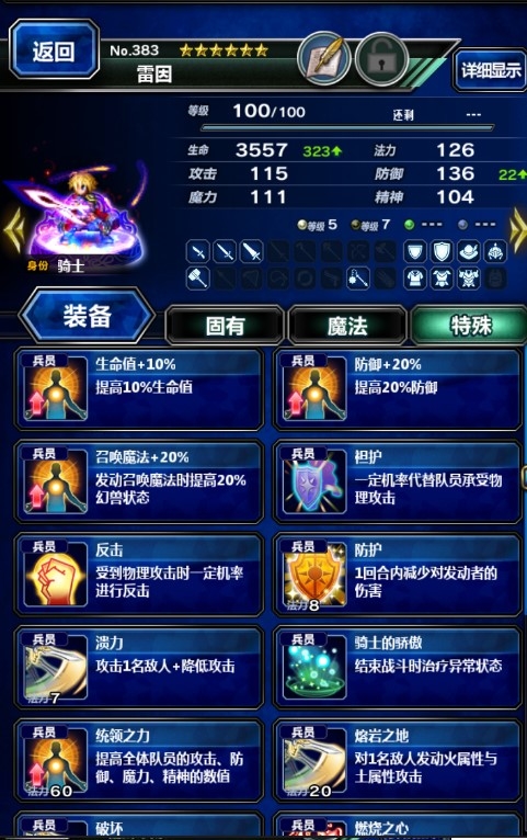 《最终幻想:勇气启示录》里搭配伙伴往这看! 在《最终幻想:勇气启示录》当中,玩家在刷副本、做活动、玩竞技场的时候,可以从游戏中的兵员池中非常自由地选择自己喜欢的角色进行组队。而如何选择正确的兵员进行搭配才能轻松刷怪打副本战胜其他玩家呢?一起来了解一下策略性的技能和伙伴搭配吧! 兵员技能各具特色,战斗特性差异明显 在《最终幻想:勇气启示录》中,玩家可以选择的兵员数量庞大,除了游戏本身自带的主人公以外,游戏内还有大量来来源于历代《最终幻想》系列的作品当中的人物,因此每个人物都包含着极具特色的技能设定,不仅如此,由于存在职业上的差异,不同兵员之间的战斗特性也有很大的不同。 除了最基本的职业和属性划分以外,游戏里的兵员最大的区别在于其技能设定,其中,每个兵员都有包括特殊主动能力、特殊被动能力、极限技和魔法这些技能设定。 特殊主动能力是特殊能力的一种,正常的效果是对敌方单体、全体造成伤害,或者形成一个Buff或者Debuff,以及回复一定血量等等,它需要兵员在战斗中花一回合发动,并花费一定的MP。 特殊被动能力则是兵员本身自带的一层Buff,具有增益效果,或者自带对敌方的Debuff,部分兵员还带有可触发的被动能力,如受到一定伤害或者对敌造成某种伤害时,可触发一定的效果,某些强力的特殊被动能力,需要在兵员升星后达到满级时才可开启。 极限技是游戏中每个兵员拥有的特殊能力,可在战斗中使用。每个兵员都有一项极限技,有攻击型、治疗型、辅助型,功能五花八门。在战斗中攻击魔物时,有机会掉落极限技石,造成“过量伤害”就会累积,累积完之后兵员就可以使用极限技。使用完之后极限技槽就会归零,并之后再次进行累积。 而魔法是一类型的能力,它可能由兵员固有、来自能力的装备、幻兽、装备等。和其他能力不用的是,魔法不知可以在战斗中使用,还可以在探索时使用。需要消耗一定的法力值。而魔法可分为白魔法(恢复)、黑魔法(攻击)、绿魔法(提升)三大类,固有魔法则会依兵员的稀有度和等级而逐步解锁。 如此完备的设定,使得每个兵员都有独特的特性,这点需要玩家在战斗中不断积累摸索,如此丰富的选择也有利于玩家自行搭配组合。 兵员养成玩法多样,持续收集乐趣多多 游戏中兵员的养成主要包括强化和觉醒,在强化时,玩家需要选择强化的兵员,再选择要合成的素材,这些素材可以是一般的兵员,也可以使用经验值专用兵员,一次最多可以选5个素材。而选择好之后,会显示要付出的基尔,以及可获得的经验值数,确认之后即可强化。 强化后角色会获得经验值而升级,如果运气好获得“大成功”的话,会比预计的经验值还要多(1.5倍),而作为素材的兵员会消失,但其装备的装备、能力会自动卸除并回到道具箱。 如果以同样的兵员作为素材,其信赖度会大幅提高。 兵员觉醒则是用来提升兵员的能力(增加星星数)的养成方法,兵员的等级到达最大上限之后,就能进行觉醒,在兵员选项中点击该兵员,选择特定的觉醒素材后再点击觉醒,即可进行觉醒。但每个兵员星等有一定上限,到达上限即不能再觉醒。 觉醒之后兵员的星等会增加,但等级会归零,因此暂时各项数值反而会下降,需再类积经验值之后才能再成长。觉醒后极限技等级不会减少,但其技能会变化,最大等级会提升。 各类的魔法等级有一定的机会上升。 在兵员的能力觉醒后,能够提升能力性能与威力。觉醒后的能力,会根据觉醒的阶段显示不同颜色的图示。玩家可以觉醒兵员的固有能力,选择拥有可觉醒能力的兵员,并选取能够觉醒的能力。 由于培养兵员需要花费大量的资源,因此在游戏当中,玩家需要根据不同的需求,例如日常副本、斗技场、次元裂缝等活动,组合出专门的队伍进行战斗,而每个队伍都需要5个兵员进行组合,所以玩家应该着重培养不同职业、功能不同的5-10个核心兵员,以及15个左右的常用兵员用于组合出不同的队伍,这样才能体现出兵员养成的最大价值。 兵员搭配极具策略,组合完善战力爆表 由于游戏中的每一位兵员都拥有一个特点鲜明的觉醒技,攻击、防御、辅助BUFF作用定位各不相同,因此如何搭配显得非常重要,这能让战斗的策略性提升至更高一层。 在前期兵员数量还不是非常充足的情况下,需要活用游戏所给的福利兵员,其中的三大主角就可以在很长一段时间里陪伴玩家。 初始雷因——主角之一,其能力在所有角色里不算高,但是他在5星26级时有被动技能召唤魔法可以增加20%幻兽的能力,所以他只要装备幻兽,能力就会有一定的提升。 技能方面,他有庇护,可以一定概率替代同伴抵挡敌人的伤害,而反击则可以在遭受物理攻击时有一定概率进行反击,相对比较实用,在难以获得5星兵员的时候,他可以作为一个强力兵员进行培养。 初始拉斯韦尔——主角之一,他的攻击力很高,除了血量和精神力以外其他地方都比雷因强,作为物理型职业,他的攻击力更强,被动技能可以为自己增加20%的攻击力,而分身技能可以使他回避两次攻击,另一个醒梦技能则可以在攻击一个敌人的同时消除他的Buff,相对比较好用。 而本身偏向攻击的他,可以承担一定输出,但是不能一直在前面抗伤害。 初始菲娜——女主角,她的精神值比较高,在技能方面则是典型的奶妈,有回复和辅助型Buff。 她的被动技能“激励”可以增加全体攻击和