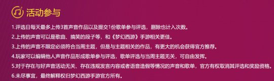 12月19日12:00,万众期待的新一届梦幻好声音活动如约而至!在接下来的三周时间里,每一位等级≥40级的《梦幻西游》手游玩家都能参与到这一活动之中,秀出自己心中的最美声音,赢取丰厚奖励! 活动主页:https://my.163.com/2018/hsy/ 如约而至,梦幻好声音两大组别等你参赛 12月19日~1月8日2018梦幻好声音评选活动拉开帷幕!本届梦幻好声音活动无需报名参赛,等级≥40级的玩家只需在期间的每周三12:00~次周二12:00期间上传自己的好声音作品或歌单,参与声音评选或歌单评选组,即可自动获得参赛资格。 在评选期间的每一周,玩家可以点赞、送花、投票,支持自己心中的最美声音,系统将根据玩家的反馈,选出当周以及整个活动阶段欣赏值最高的好声音。为周榜和总榜优秀作品的作者送上丰厚好礼! 首周主题公布,纸短情长为梦读诗 在梦幻好声音举办期间,每周《梦幻西游》手游都会公布一个主题。参加声音评选组的玩家可以根据主题,提交对应的参赛作品,也可以自由发挥,在最擅长的领域展示自我。但需要注意的是:与主题相关的作品,将有更大的机会获得官方推荐。另外歌单组评选与当周主题无关,参赛玩家可以自由发挥。 本周主题为“纸短情长,为梦读诗”,玩家可以回首自己在《梦幻西游》手游中的种种经历,以诗的形式与别人分享这些美好回忆。 艺兴逐梦,艺兴见面会门票静待有缘人 在玩家秀出自己的好声音同时,《梦幻西游》手游也为在活动中表现出色的玩家准备了丰厚好礼。 获得周榜声音排名前100名、歌单排名前50名的玩家,将根据名次获得梦幻icon集合、精选高级兽诀礼包、专属徽章、好声音队标、张艺兴明信片、张艺兴海报、高级藏宝图、好声音队标、神兜兜、彩果、好声音冒泡框、好声音感恩礼等丰厚奖励。 而在总榜评选中获得最高欣赏值的声音评选组前100名、歌单组前50名的玩家,将根据成绩获得张艺兴见面会门票、神兽超级神犬、称谓特效、长安城雕像特权、千叶莲露、称谓特效、超级幻色丹、高级内丹礼包、高级藏宝图、宝石锤、个性图标、好声音空间秀、好声音感恩礼等好礼。 值得一提的是:总榜声音排名前10名的玩家,才能领取张艺兴见面会门票资格,想要获得这一特殊奖励的玩家一定要积极参与声音评选组活动哦! 现在,《梦幻西游》手游2018梦幻好声音活动已经正式开启!专属荣耀、丰厚奖励已经为玩家准备妥当。谁能在其中脱颖而出,成为亿万玩家的共同偶像,与张艺兴在线下相聚呢?让我们参与其中,静待最美梦幻声音的诞生吧! 网易大神是网易游戏旗下的精英玩家社区。这里汇聚了广大精英玩家、游戏圈红人、行业大咖,集合了网易独家的官方资讯和福利趣闻,旨在为玩家打造一个丰富的游戏兴趣社交圈。玩家可以在网易大神与游戏中的好友实时聊天、多元互动;以游戏会友,结交更多游戏同好,和大神一起发现更多游戏乐趣。 |