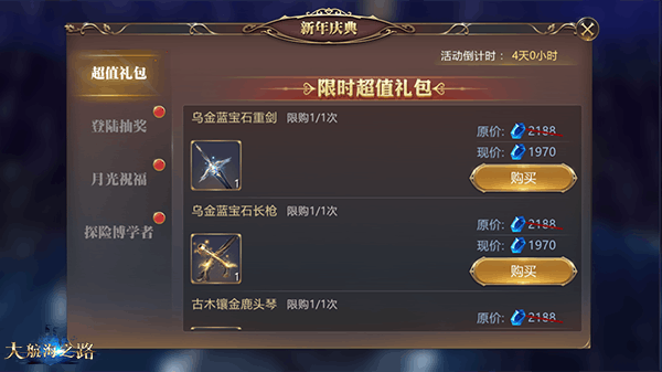 2月19日,农历元宵节即将来到,《大航海之路》也为船长们准备了丰厚的元宵节系列活动,为船长带去元宵节的专属祝福和福利!2019年2月16日0点~2019年2月19日24点活动期间,“超值礼包”、“登陆抽奖”、“月光祝福”、“探险博学者”四大福利活动即将火热开启,丰厚元宵专属福利,静待每一位船长! 新年换新装 超值礼包火热抢购中 重塑海上的荣耀与辉煌,强力的装备自然必不可少。而在《大航海之路》“元宵节”专属系列活动当中,则为船长们率先准备了“超值礼包”福利活动! 2019年2月16日0点~2019年2月19日24点活动期间,等级达到38级的船长登录游戏、抢购“蓝鲸之沁礼包”、“6级船只装备礼包”、“海军学院卓越贡献证明”等热门礼包,即可享受不同额度的超值折扣。其中,活动期间购入“登陆抽奖奖券”的船长,将享受6折的超值福利!超值礼包的来袭,也将助力船长升级自己的专属舰队! 新年赢福利 登录抽好礼 截止2月19日活动期间,等级达到38级及以上的船长,每日登陆游戏,即可通过消耗奖券的方式,参与到登录转盘抽奖活动当中,并有机会获得包含高等级船装、海军学院卓越贡献证等在内的丰厚奖励,更有光风霁月主题等你来赢! 迎接新年的希望 月光祝福即将开启 月光,照亮前行的路径,也带来新年的祝福和希望,在“月光祝福”活动当中,每一位等级达到38级的船长,都将有机会在航行的路途当中,享受月光的祝福!2019年2月16日0点~2019年2月19日24点活动期间,游戏中所有珍稀货物事件的随机货物将全部替换为月光石。船长船舱中如载有珍惜品质以上的月光石,则将受到月光的祝福,不会触发航海负面事件。 同时,使用了光风霁月主题,同样可以受到月光的祝福。相信在月光的庇佑和祝福之下,船长的前行之路也将愈加一帆风顺! 开启下一段探险 专属活动即将开放 无尽的探险,让每一个船长都具备了渊博的学识。而在“探险博学者”活动当中,你将有机会通过丰富的海上知识经验,赢取专属活动奖励!截止至2019年2月19日24点,等级达到38级的船长,只需完成指定目标,即可解锁包含丰厚航海币、资材在内的专属奖励,更有机会赢取“采购书礼包”、“防具冶炼工具”、“探险天赋书”等在内的丰厚奖励! 元宵节即将来到,《大航海之路》也用四大元宵活动,为玩家带来一份专属福利。后续游戏还将为船长们带来更多惊喜内容,更多游戏信息,请关注《大航海之路》官网、官方论坛。 此外,网易和电信合作推出网易白金卡,玩游戏,听音乐,流量统统免费(包括网易所有产品),高铁玩游戏不掉线!惊喜多多,赶紧来体验吧! (PC端官网地址:https://bjk.163.com/) (移动端地址: https://red.163.com/hongka/hongka.html?cmpid=null&shopid=null#music_tk) |
