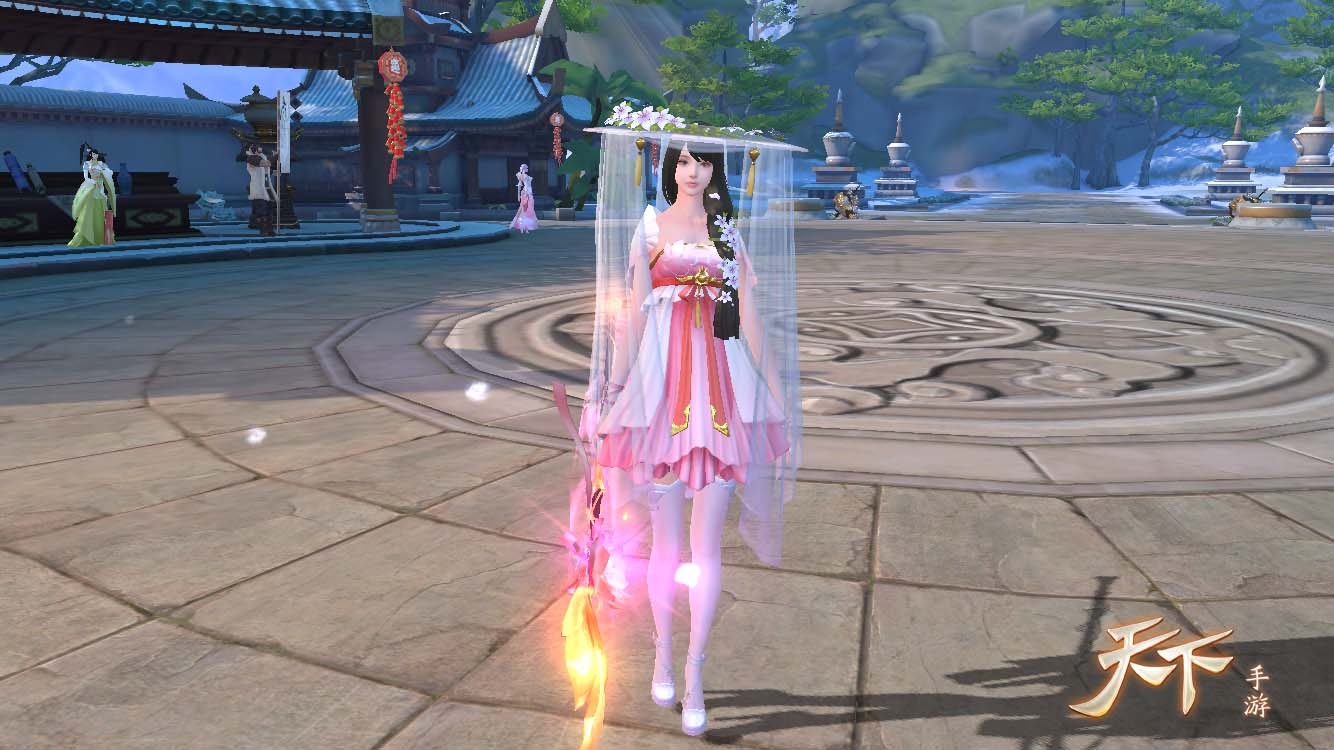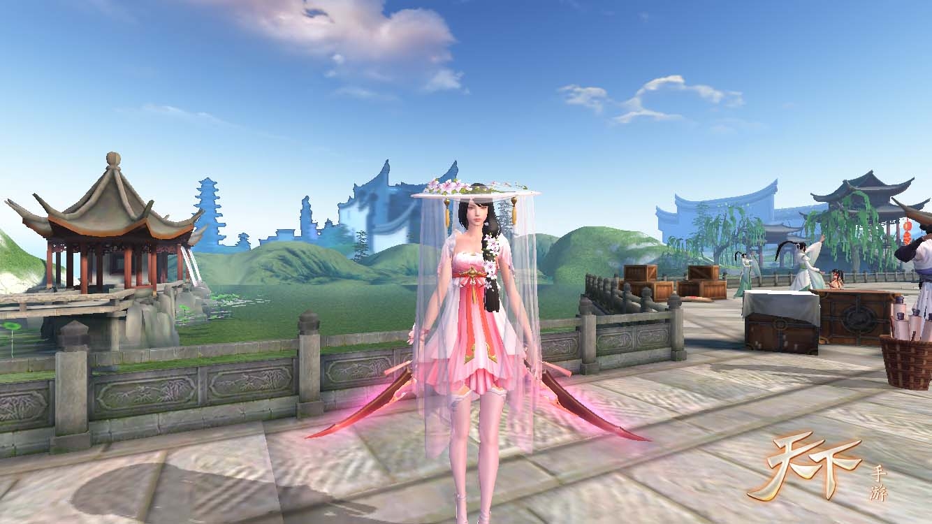 而女装绯色翩然,如同一朵含苞待放的桃花。娇艳欲滴之下又带着半分羞意半分倔强,酣酣桃始花,灼灼粉面笑。既有少女的浪漫唯美,又因斗笠轻纱,带有一丝别样的风情与妩媚。灼灼桃花十里,只取一朵于心。少侠难道不为此心动吗?