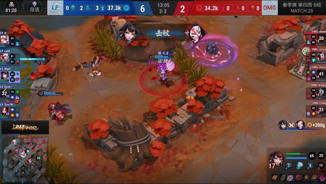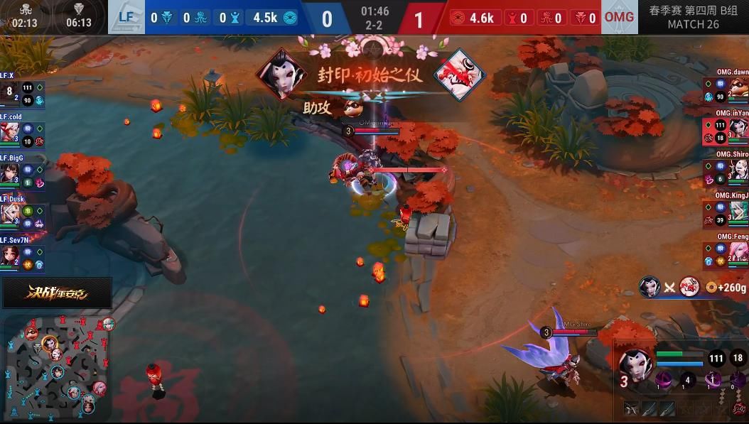 随着OPL春季赛的展开,各支战队都开始渐入佳境,拿出自己真正的实力进行较量。从本周比赛开始,OPL春季赛第二次循环赛也正式开启。在本周的比赛中,可谓是看点十足,OMG大战LF,预选赛公开组劲敌再遇WEFUN对阵GOE。 鏖战五局 LF终结OMG连胜 比赛的前四局,LF双C表现突出先下两程,而到第三第四局OMG连续从LF手中抢下八岐大蛇,凭借大蛇优势让二追二,将比赛带到第五局决胜局。到决胜局的BP情况来看,LF贯彻针对OMG打野inYan的战术将三个ban位都给到了打野,尤其是inYan所擅长的傀儡师和万年竹。反观OMG这边,则是Ban掉在比赛前两局带给他们极大压力的小松丸。 双方的阵容都具备对线消耗型式神,但OMG的射手位选择了偏向中期的青行灯,LF则是选出了后期强势的御馔津。 比赛开场不到两分钟,OMG则是立刻给了LF一个下马威,OMG骨女配合狸猫,上路抓住对方两面佛完成击杀。 5分46秒,LF则是立刻还以颜色,4人抱团下路拿下石距,逼退OMG众人,LF取得经济上的小优势。 双方在发育期都没有发生大规模团战,都选择了求稳,比赛整体进入中期,在这期间,双方终于爆发了一次真正意义上的团战,LF依靠阵容强开团优势,茨木童子率先开团,配合烟烟罗远程POKE,留下对方三人,完成三大神器,最终LF完成1换4,LF顺势拿下八岐大蛇,双方经济拉开到4k,且LF具有两条石距的buff优势,OMG开始难以接团。 比赛来到20分钟,在OMG顽强防守之下,LF借助之前那一把大蛇仅清理掉OMG的所有二塔。在第二条大蛇的争夺战中,LF虽然继续压制OMG众人,但是这第二条大蛇,则是被inYan的骨女抢走,但这代价却是OMG的一波团灭。LF的双C状态良好,借助兵线一鼓作气推平高地,终是赢下了这场艰难之战。 平安京热血之战 GOE复仇成功 GOE吸取了上一局的失误,在本次BP阶段选择了二口女加烟烟罗的远程消耗体系。而WF则是选择了小鹿男,意图依靠小鹿男的大招进行冲散敌方阵型,为己方的C位提供更好的输出空间。 双方一开始并没有爆发任何人头,比赛来到4分8秒,由于GOE在前期运营方面更胜一筹,第一条石距由GOE获得。 比赛进入7分钟,GOE5人包团包夹WF上路,烟烟罗寻找到最有利的输出位置,隔墙进行连招,击杀WF山兔。 8分33秒,双方围绕大蛇展开拉扯,最终GOE的鸦天狗利用降伏收掉了大蛇,但同时也被WF留下四人,此时GOE在经济上领先WF2k。 13分47秒,团战再次爆发,WF御馔津意图换掉二口女,结果被二口女与鸦天狗反杀,此时经济已拉开至3k。 比赛进入中后期,双方围绕第二条大蛇进行缠斗,但是GOE方兵线优势明显,已经进入WF大营,WF此时可谓是前有狼后有虎,GOE鬼使黑抓住机会一波进场进行开团,而烟烟罗不断远程消耗,最终GOE烟烟罗收获四杀,一波拿下本局比赛。 早在预选赛公开组阶段,GOE与WEFUN(原桃子电竞)就曾有一战,当时GOE以1:2惜败,如今两大战队在常规赛再次相遇,打满五局后GOE也成功复仇,再次收获春季赛一分。 比赛截止到目前,LP和OMG战队一直牢牢占据A、B两组榜首位置。下周将迎来OPL春季赛第五周的比赛,各种老牌强队皆数登场,LF,TOT,OMG,OG都将再次迎战不同对手,而WF能否翻身赢下LF?LP是否可以依然稳住A组头名?一山不容二虎,OMG与TOT谁将真正成为B组No.1?让我们期待第五周的对决吧! 本次OPL春季赛合作直播平台包括网易CC直播、Bilibili、斗鱼直播、触手直播、Kilakila、爱奇艺、战旗直播、百家号、抖音、优酷直播、西瓜视频、一直播。一起为喜欢的战队打Call吧! |