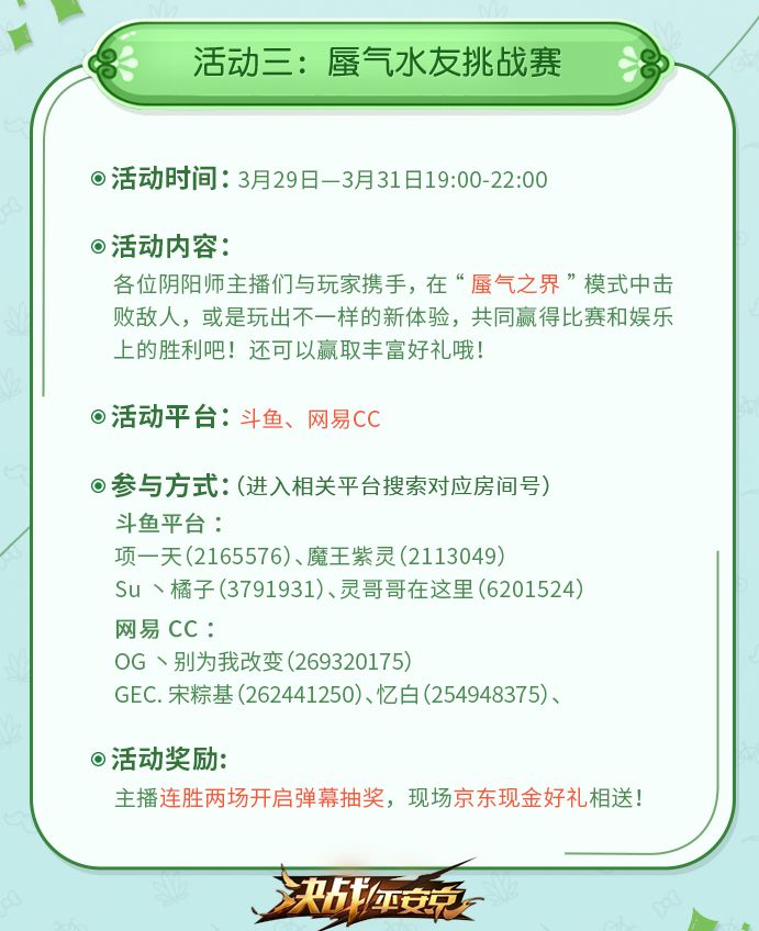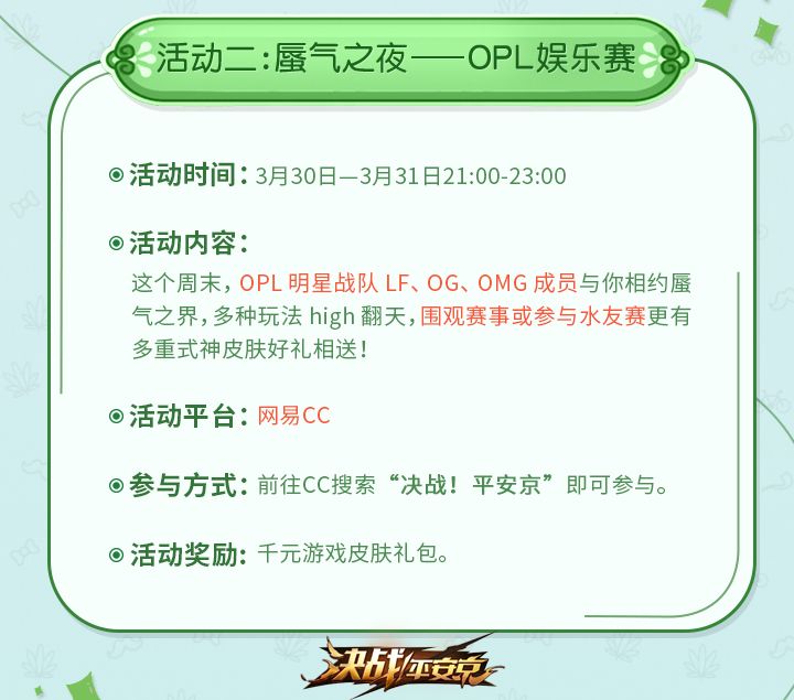 携手出征,蜃气之界。强大的蜃气将平安京的一隅幻化成新的“蜃气之界”,敌方式神竟然变得一模一样,如梦似幻,没有人能从中逃脱。这一次《决战!平安京》蜃气之界全新娱乐玩法来袭,邀大人们以相同式神出征,为崽而战!同时,“决战!复读机”主题活动同步开启,邀玩家分享、记录趣味游戏瞬间,赢取丰厚专属奖励。 《决战!平安京》官网:http://moba.163.com/ 《决战!平安京》S4赛季:https://moba.163.com/2019/s4/ 《决战!平安京》职业联赛:http://moba.163.com/2018/opl/ 式神复刻 克隆模式“蜃气之界”正式开启 眼前的就是真实的世界吗?更何况这怪异的事情,发生在一个满是蜃气的结界当中。这里似乎蕴藏着没人可以逃脱的宿命。看上去,所有的敌人有着相似的外貌,这战局有赢的希望么?等待下一位勇敢的阴阳师,全力以赴,带领己方势力逃出生天。 蜃气之界是《决战!平安京》推出的全新娱乐玩法。在此玩法中,己方队伍的五名阴阳师将使用完全相同的式神,并与敌方展开激烈对抗。此外,不同定位的式神在蜃气之界中获得不同程度的属性增强,让各位大人畅享施放相同式神技能、体验休闲竞技的乐趣。 全新“蜃气之界”限时娱乐玩法,将在3月29日正式开启,并于每周五至周日全天开放。大人们可在大厅内选择娱乐——秘闻探索——蜃气之界。进入式神选择阶段后,大人们可以各自挑选喜爱的式神,队伍中被选中次数较多的式神,将确定成为本局中我方所选式神,五名队友也将操作这名相同的式神一齐出战。若双方选择式神相同时,局内将会出现十位相同式神对局的欢乐场面。 进入战场后,依据大人们所选式神的定位,该式神将获得伤害、生存等增益效果。首批将开放守、侍、射、巫、忍、祝类型的多名式神供各位畅玩体验。值得一提的是,五名队友之间的默契和各自的操作技巧,将成为赢得胜利的关键!更加丰富有趣的对战形式,也将再一次激发出大人们的操作潜能,演化出更多的或经典、或有趣的战术! 惊喜福利来袭 决战!复读机助力新玩法 在蜃气之界玩法重磅开启的同时,“决战!复读机”系列活动也将欢乐来袭!参与话题讨论、OPL娱乐赛、蜃气水友挑战赛、短视频制作大赛,丰厚奖励等你来拿! (1)快乐蜃气 话题分享 3月29日至4月7日,各位阴阳师大人通过微博、游戏内-好友圈,参与“快乐蜃气”主题活动,晒出你遇到的有趣瞬间,即有机会赢得丰厚活动奖励! 【微博平台】:发布“蜃气之界”玩法相关的内容,并带上#蜃气之界#话题 【游戏内—好友圈】:在好友圈话题[蜃气欢乐”晒“]中发布相关内容推文即可参与抽奖 (2)蜃气之夜 战队对决 3月30日至3月31日晚上21点起,蜃气之夜——OPL娱乐赛即将火热来袭。届时,OPL战队LF、OG、OMG成员与你一同相约蜃气之界,上演不一样的对抗战局! 【直播平台】:网易CC (3)水友同心 主播决战 3月29日至3月31日期间,晚上19点至22点,网易CC、斗鱼直播的多位高人气主播将与大人们携手开启“蜃气水友挑战赛”,在“蜃气之界”模式中玩出不一样的新体验,还有现场弹幕好礼抽奖福利大放送! 【直播平台】:网易CC、斗鱼直播 西瓜视频联动 蜃气之界视频征集大赛启动 3月29日至4月29日期间,各位阴阳师大人可以在西瓜视频平台上传与蜃气之界玩法有较高相关度的原创视频,并在标题中含有“蜃气之界”,即可参与“决战!复读机——短视频征集大赛”。内务组将根据视频质量、相关性、趣味程度等评选出多名奖项,发放丰厚的现金奖励! 此外,任意一条原创的“决战!复读机”参赛视频在西瓜视频的播放量超过200时,大人们即可参与幸运抽奖,有机会瓜分千元大奖! 携手相同的式神,以相同的姿态出征,征战全新的蜃气之界!《决战!平安京》“蜃气之界”玩法即将开启,全新限时娱乐模式,更多趣味设定,期待各位阴阳师大人前往体验!更多精彩内容,更全活动预告,请关注《决战!平安京》官方网站、官方微信、官方微博。 【关于《决战!平安京》】 《决战!平安京》是一款全球无符文对称MOBA手游,秉承 5V5公平竞技理念,告别符文系统,实现了地图镜像对称、战斗数值均衡,真正绿色公平对战;继承网易重磅IP《阴阳师》,和风画面细腻唯美、人气式神接连登场、顶级声优鼎力加持;独特有趣的技能设定和自由搭配的“阴阳术”,带来更多的技能组合和战术变化,为玩家带来全面革新的MOBA手游体验! |