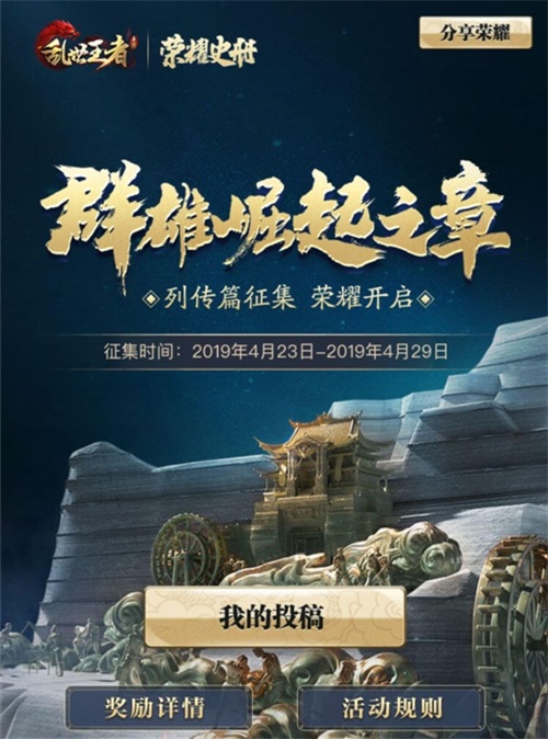 《乱世王者》经过一年多的稳健运营和创新,凭借着精致的画面与音乐、多样性的创新玩法迅速成为国内最热门的战争策略游戏之一,也成为了腾讯战争策略手游的扛鼎之作。今年,《乱世王者》不会停止步伐,依然不断创新,此番更是将去年备受玩家好评的玩家故事集《史册》第二季活动全新升级为《荣耀史册》。未来不仅会以三大篇章活动贯穿全年,更会联合非遗大师定制篇章专属非遗工艺品,见证广大玩家所谱写的游戏智慧与历史。 第一阶段的《荣耀史册》列传篇的征集活动下周将正式开启,在此诚邀各位玩家留下自己的故事,在史册里刻下属于自己的一页。 列传篇征集开启 汇聚玩家智慧故事 列传篇作为《乱世王者》第二季度最重要的活动,会正式向广大玩家征集与游戏一同度过数载岁月中的点点滴滴。在《乱世王者》里,英雄不问出处,无论是荡气回肠的战争诗篇,亦或是感人肺腑的兄弟情谊,这些专属于玩家的智慧与故事均有机会在《荣耀史册》里留下浓墨重彩的一笔。 届时,玩家只需进入列传篇征集的活动页面,就可以投稿以玩家本人为主角的原创故事。投稿成功后,通过官方的审核后即有资格进入评选阶段。更重要的是,所有通过审核的玩家除了获得资源、加速等游戏奖励,更享有专属专属史官铭牌作为身份的象征! 当投票阶段开启后,玩家投稿的作品通过审核后将参与全服群雄榜排名竞争,最终群雄榜中获得总票数排名前35的玩家的故事,将正式入选《荣耀史册-列传篇》。入选玩家除了享有海量橙色将魂、星尘等高级游戏奖励外,更能获得终极大奖——专属限量非遗藏品。不仅如此,排名前4的入选者还能享有游戏专属官宣拍脸图,成为全服玩家的焦点! 更值得注意的是,入选的玩家所在的联盟,甚至是所在的区服,都能获得丰富的游戏奖励,可以说是一人入选,全服受益。 除了亲自参与投稿,其他玩家也可以通过投票助威的形式参与其中,为支持的玩家和故事投票。全服玩家可以通过参与游戏内的活动获得投票道具,玩家每投十票即可获得一次抽奖机会,海量资源等游戏好礼静候玩家们参与。同时,投出总票数在前100名的玩家将以荣耀见证者的身份,位列荣耀见证榜。投票截止后,投出总票数排行前35的玩家同样可获得专属限量非遗藏品。谁能最终入选史册,最终决定权将握在全服玩家们的手上。 联合非遗定制专属荣耀 新文创传承文化 作为《荣耀史册》列传篇活动的最高奖励,联合非遗大师所定制的专属限量非遗藏品备受广大玩家的期待。入选史册的玩家将会获得这份匠心独运的工艺藏品,这可以说是《乱世王者》至高无上的荣耀。从去年的《史册》第一季到今年全新升级的《荣耀史册》,都是游戏与玩家共同创造文化与历史的见证者。此番联合非遗,旨在由游戏辐射玩家,共同重视对非遗文化的传承,从而不断感染大众,让更多人感受非遗传统文化的魅力。 《乱世王者》作为国内SLG品类手游的佼佼者,着眼点已不再只是简单开发IP价值,而是创造以IP为核心、文化价值和产业价值全方位结合的新型生产方式。同时,更以新文创的思路去打造具有广泛影响力的中国文化符号,承担更多的社会责任,从而发扬优秀的传统文化。 从去年开展的“智造历史”品牌活动,到如今的《荣耀史册》,无一不体现了游戏与玩家的良好互动,也展现了《乱世王者》一贯以来遵循的“尊重玩家,共建品牌”理念。列传篇仅仅是开始,第三、第四季度将会依次推出世家篇和本家篇的活动,我们有理由相信在不久的未来,无数的惊喜亟待广大玩家的共同见证。 《荣耀史册》列传篇征集活动即将开启!还在等什么?准备好你的故事,与万千玩家分享荣耀事迹,留下属于自己的篇章! 关于《乱世王者》 由腾讯天美工作室群 - T1工作室打造的《乱世王者》是一款历史架空背景的战争策略手游。游戏秉承天美工作室群一贯的精美画面,颠覆了传统SLG的视听体验,给主公带来耳目一新的体验!在玩法上,游戏最大程度还原战争策略游戏的精髓,主公将化身为在这个乱世中的一方诸侯,从招兵买马到安邦治国,逐步走向问鼎天下的争霸之路。 |
